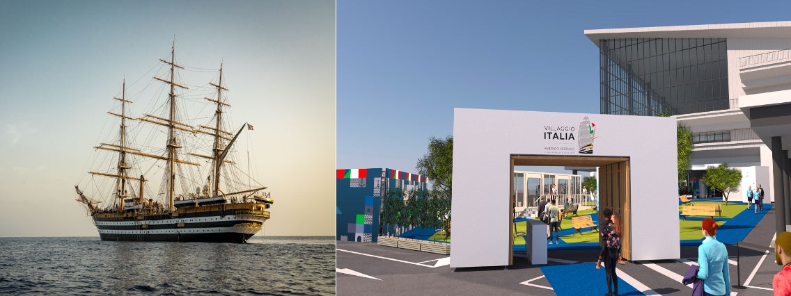 「アメリゴ・ヴェスプッチ号」の乗船体験をはじめ、期間中毎日日没後に行われるイタリアの伝統的な降旗パフォーマンス、イタリアのグルメやワイン、ヴェネツィア国際映画祭によってキュレーションされた映画作品の上映、バンドやオペラ歌手による生演奏、イタリアの最先端ビジネス・テクノロジー・デザインにまつわる展示や、セミナーの開催など、イタリア文化の発展や変遷を学びながら体験できる様々なコンテンツを無料で提供します(飲食物や販売品に関しては有料)。