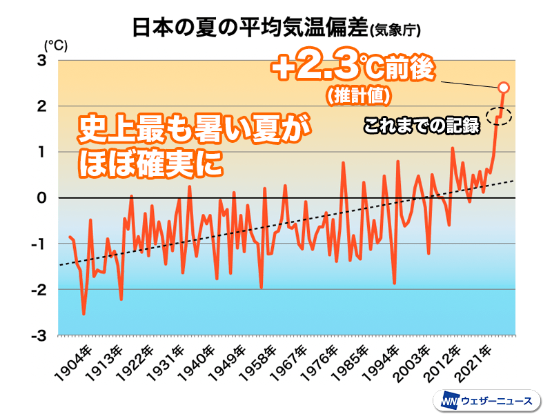 日本は3年連続で史上最も暑い夏 昨年の記録を大幅に更新する見通し - ウェザーニュース