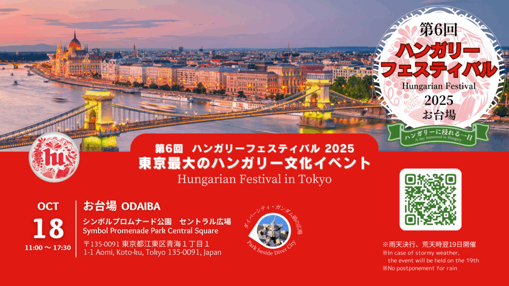 ハンガリー大使館文化部リスト・ハンガリー文化センター(東京・麻布十番)は、2025年10月18日(土)にお台場のシンボルプロムナード公園セントラル広場(江東区青海1丁目1)で第6回ハンガリーフェスティバル2025を開催いたします。
