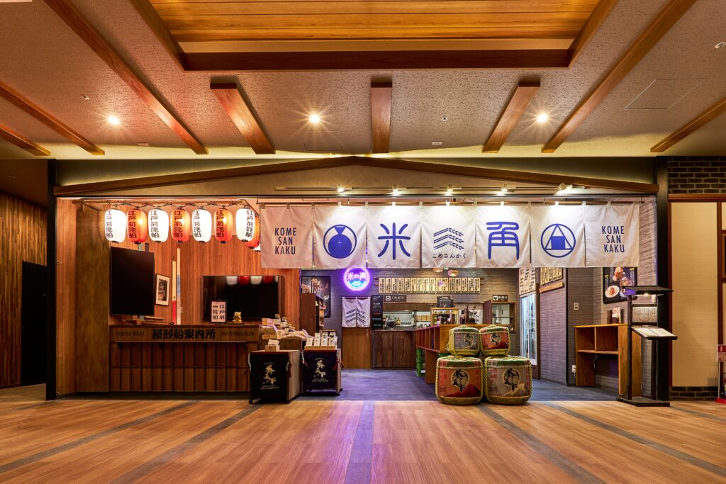 SAKEペアリング酒場「⽶三⾓」は、東京の新しい食のテーマパーク千客万来内でも比較的リーズナブルに海鮮ランチ・海鮮・くずし割烹料理・⽇本酒などが楽しめるお店です。⽇本が誇る食文化「⽶」の価値を豊洲の地から広めたい、⽶から⽣まれた「SAKE」を主軸に据えながら、「旨み」「発酵」「熟成」を繋ぐ『⽶三⾓』をぜひご堪能ください。