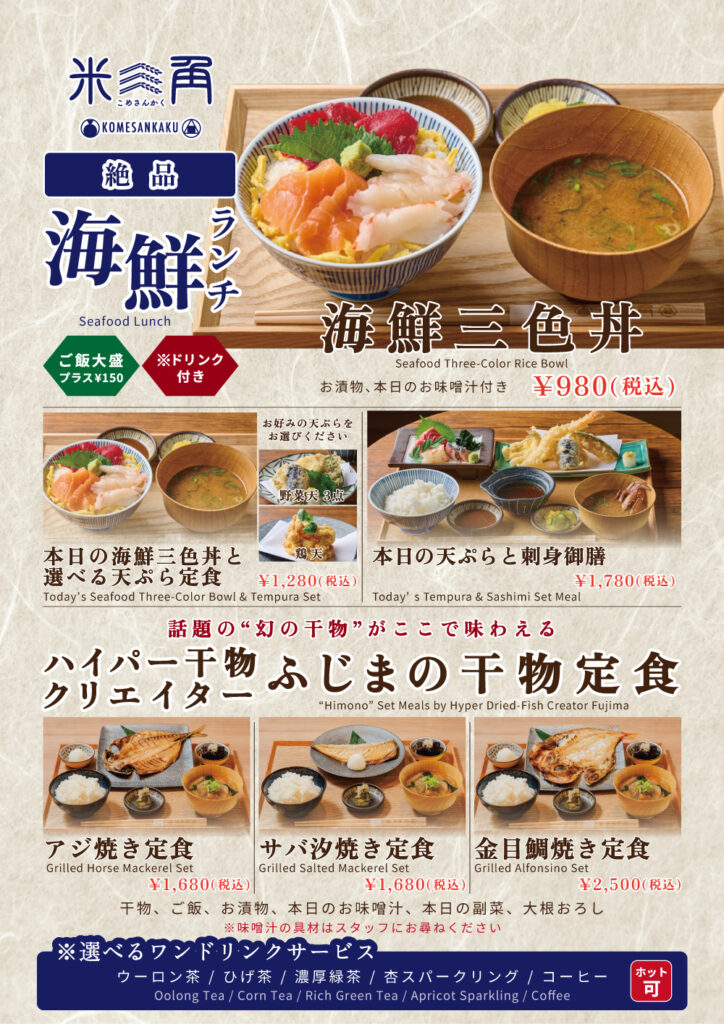 日本一の中央卸売市場の食のテーマパークである【豊洲 千客万来】内にあるSAKEペアリング酒場「米三角」(所在地:東京都江東区、運営:株式会社浜友E.F. 代表取締役:大石恵司)は、2025年10月17日より、平日12:00〜16:00限定で「米三角の海鮮ランチ」の提供を開始いたします。物価高が続く中でも、豊洲やその周辺で働くオフィスワーカーや地元住民の皆様に、午後の活力となる本格的な海鮮を手頃な価格で楽しんでいただきたいという想いから、本ランチメニューを開発いたしました。