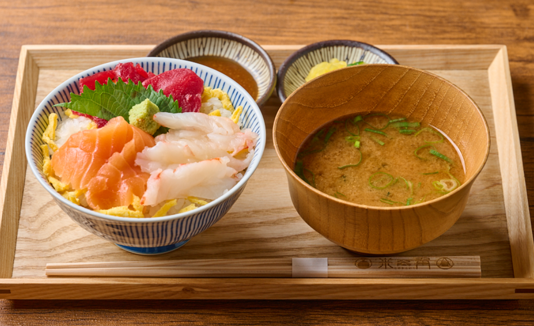 日本一の中央卸売市場の食のテーマパークである【豊洲 千客万来】内にあるSAKEペアリング酒場「米三角」(所在地:東京都江東区、運営:株式会社浜友E.F. 代表取締役:大石恵司)は、2025年10月17日より、平日12:00〜16:00限定で「米三角の海鮮ランチ」の提供を開始いたします。物価高が続く中でも、豊洲やその周辺で働くオフィスワーカーや地元住民の皆様に、午後の活力となる本格的な海鮮を手頃な価格で楽しんでいただきたいという想いから、本ランチメニューを開発いたしました。