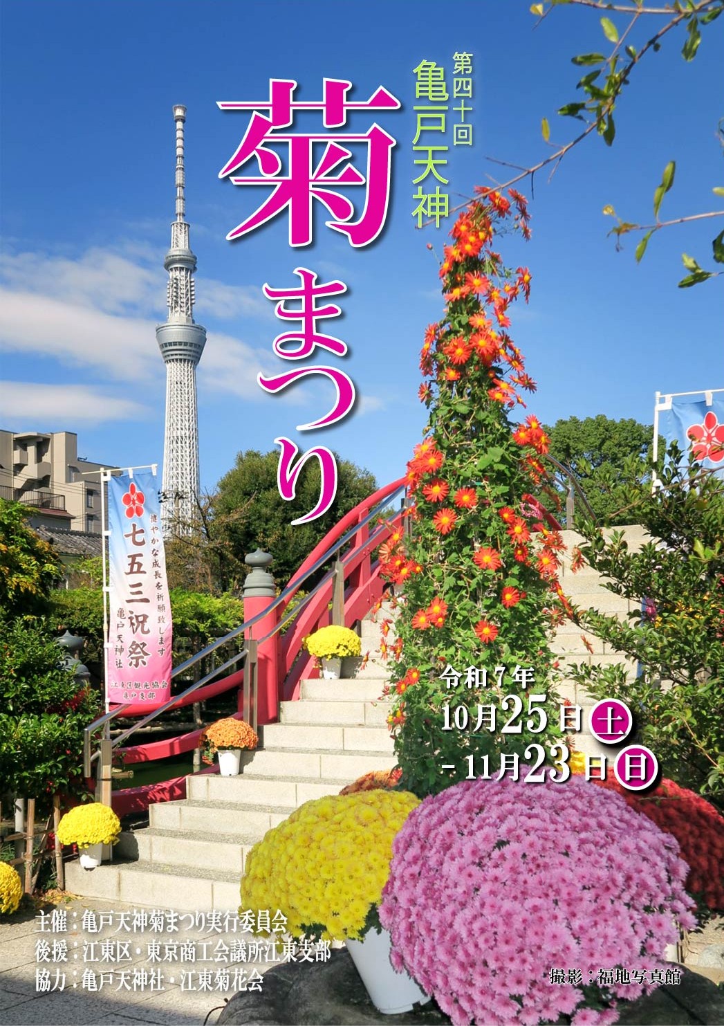 秋の空気に包まれた亀戸天神で、今年も「菊まつり」が開かれます。境内には、色とりどりの菊が約500鉢。懸崖や千輪咲など、職人の技が光る作品がずらりと並びます。太鼓橋越しに眺める菊花の彩りは、まさに秋の風物詩。学問の神様・道真公ゆかりの“残菊の宴”を感じながら、ゆったりと境内を散歩してみてはいかがでしょう。入場無料、見頃は11月上旬〜中旬ごろ。