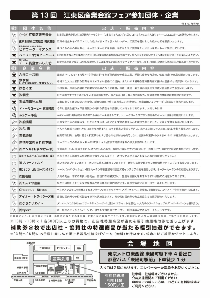 会 場:江東区産業会館(江東区東陽4-5-18)