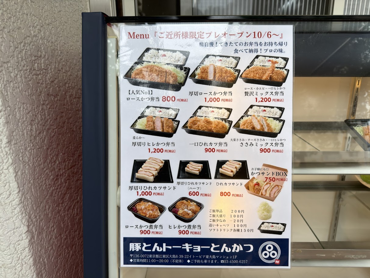 2025年10月6日(月)、東京都江東区大島8-39-22 イトーピア東大島マンション1Fに、テイクアウト専門のとんかつ店「豚とんトーキョーとんかつ 東大島店」がオープンしました。