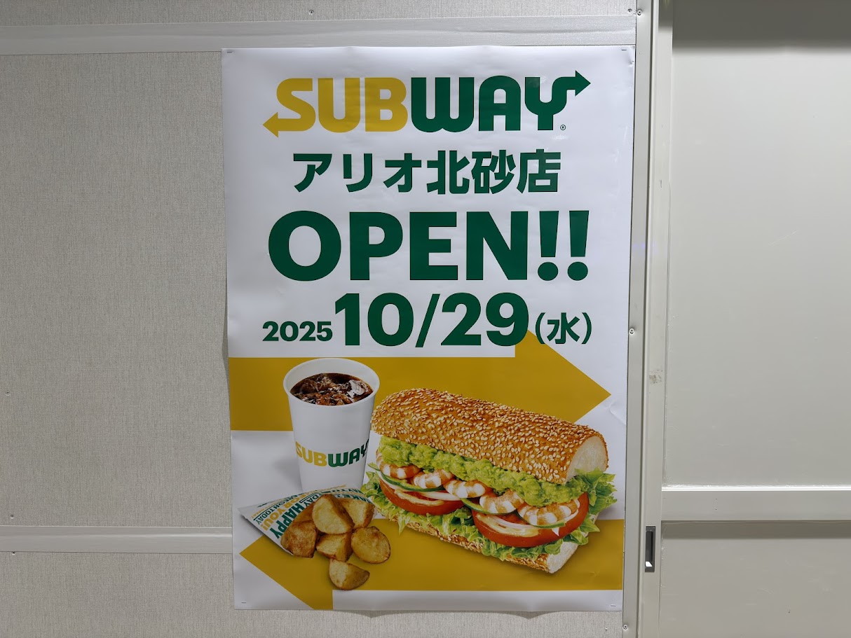 2025年10月29日(水)、東京都江東区北砂2-17-1 アリオ北砂1Fフードコート内に、サンドイッチ店「サブウェイ アリオ北砂店」がオープン予定です。