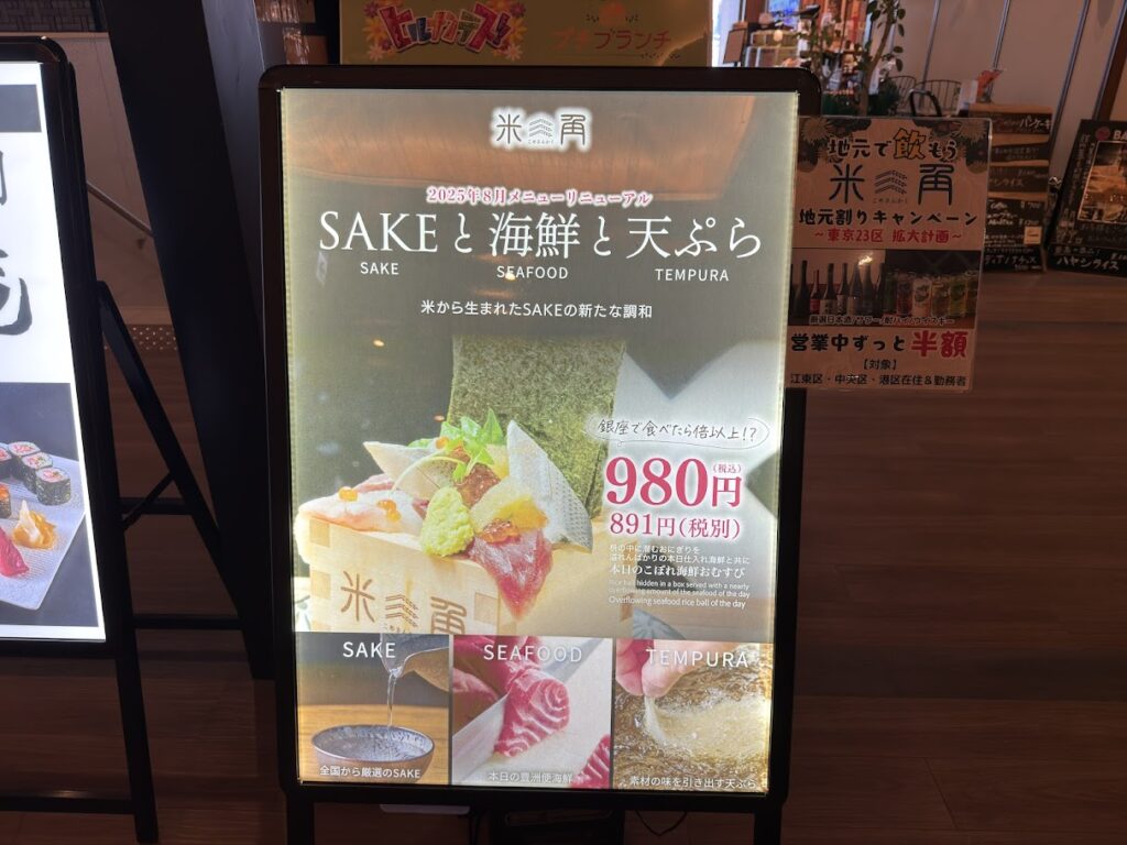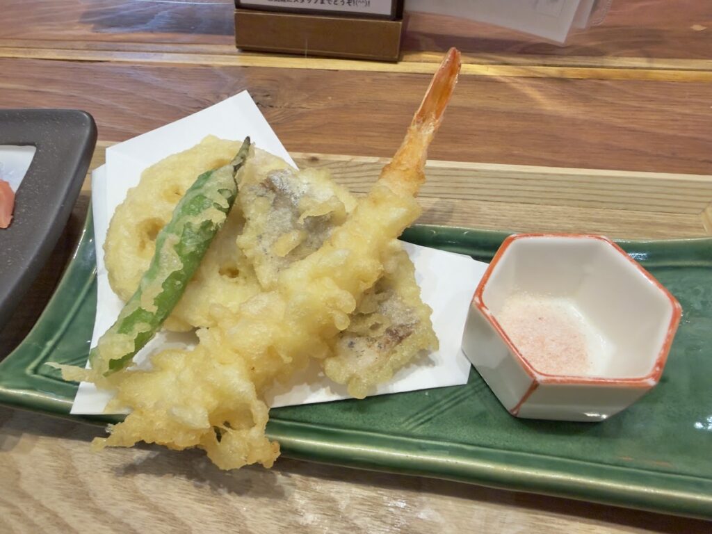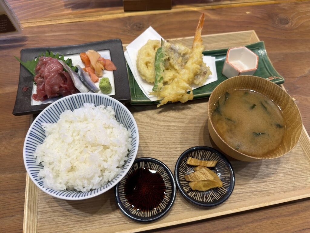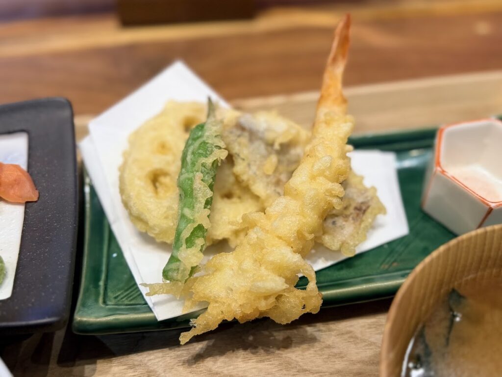豊洲・米三角「本日の天ぷら&刺身御膳」 グルメ 2025.10.172025.10.27 SAKEペアリング酒場のランチメニューがスタート! 米三角(豊洲4-8-9-2F)本日の天ぷら&刺身御膳(1780円) 豊洲の本格海鮮居酒屋が贈る“午後のご褒美”海鮮ランチが始まったとのことで初訪問!お目当ては、本日の天ぷら&刺身御膳(岩塩&美味出汁)です。 豊洲の高コスパ海鮮ランチが始まるよ。【米三角】豊洲の本格海鮮居酒屋が贈る“午後のご褒美”海鮮ランチ!980円~平日限定で提供開始!〜市場直送の鮮魚を贅沢に。午後の仕事が捗る!豊洲の高コスパ海鮮ランチを2025年10月17日より平日限定980円~提供開始いたします〜本日の天ぷら... 奥のカウンターで注文して、出来上がったら自分で取りに行くスタイルだけど、席まで持ってきてくれました。ありがとうございます! 本日の天ぷら&刺身御膳がこちら! ごちそうさまでした!