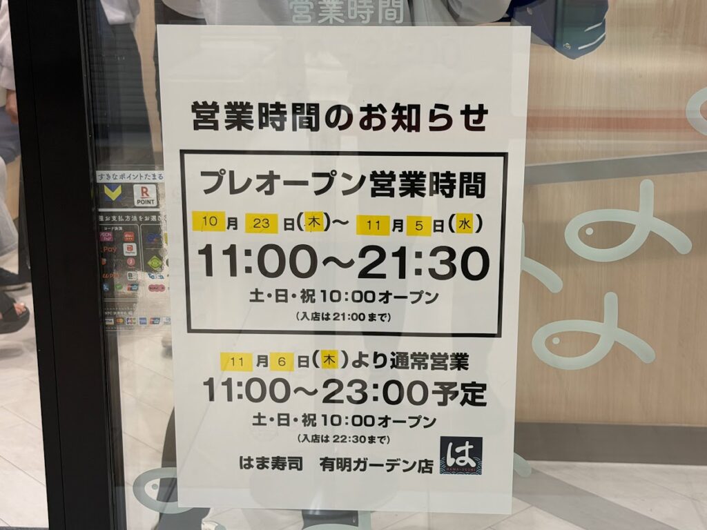 有明ガーデンにはま寿司がオープンしたよ。 新店舗 2025.10.232025.10.28 2025年10月23日(木)、東京都江東区有明2-1-8 有明ガーデン2Fに、寿司店「はま寿司 有明ガーデン店」がオープンしました。 おめでとうございます!