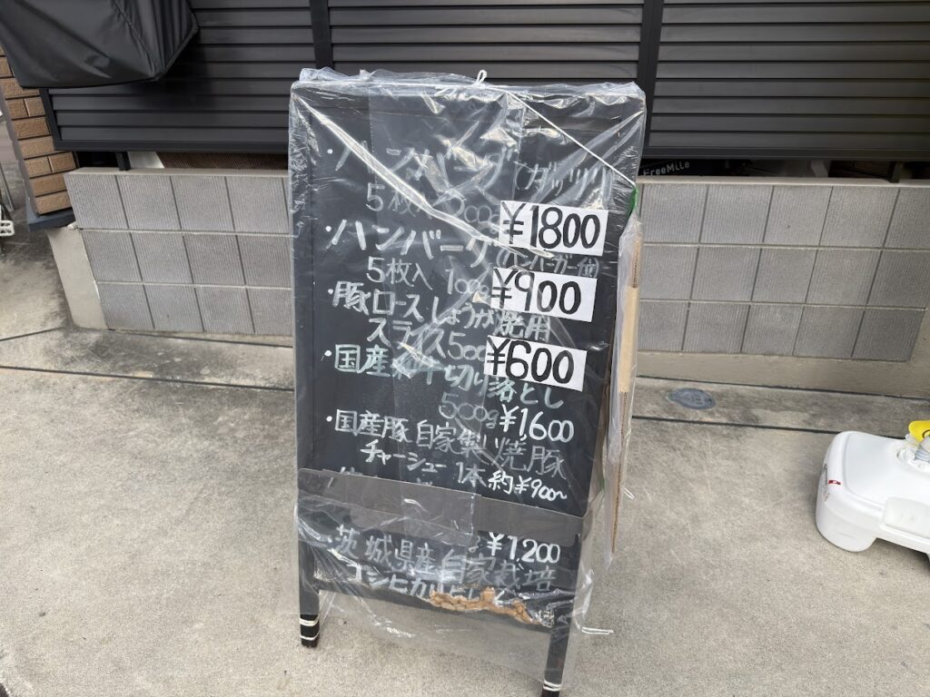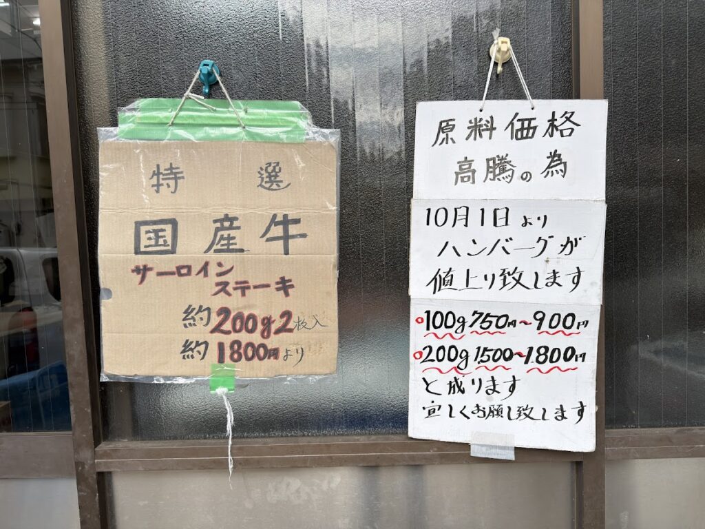 200gハンバーグ1枚360円、100gハンバーグ1枚180円、和牛切り落としがグラム320円と書くと、オトクさがわかりますね。肉質にも依りますが、だいたい普通の小売店の半額っぽいイメージ。