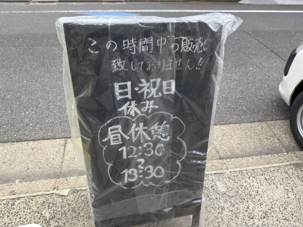 東砂の神明通りの真ん中あたり、路地の入口に立て看板が出ていれば営業中です。