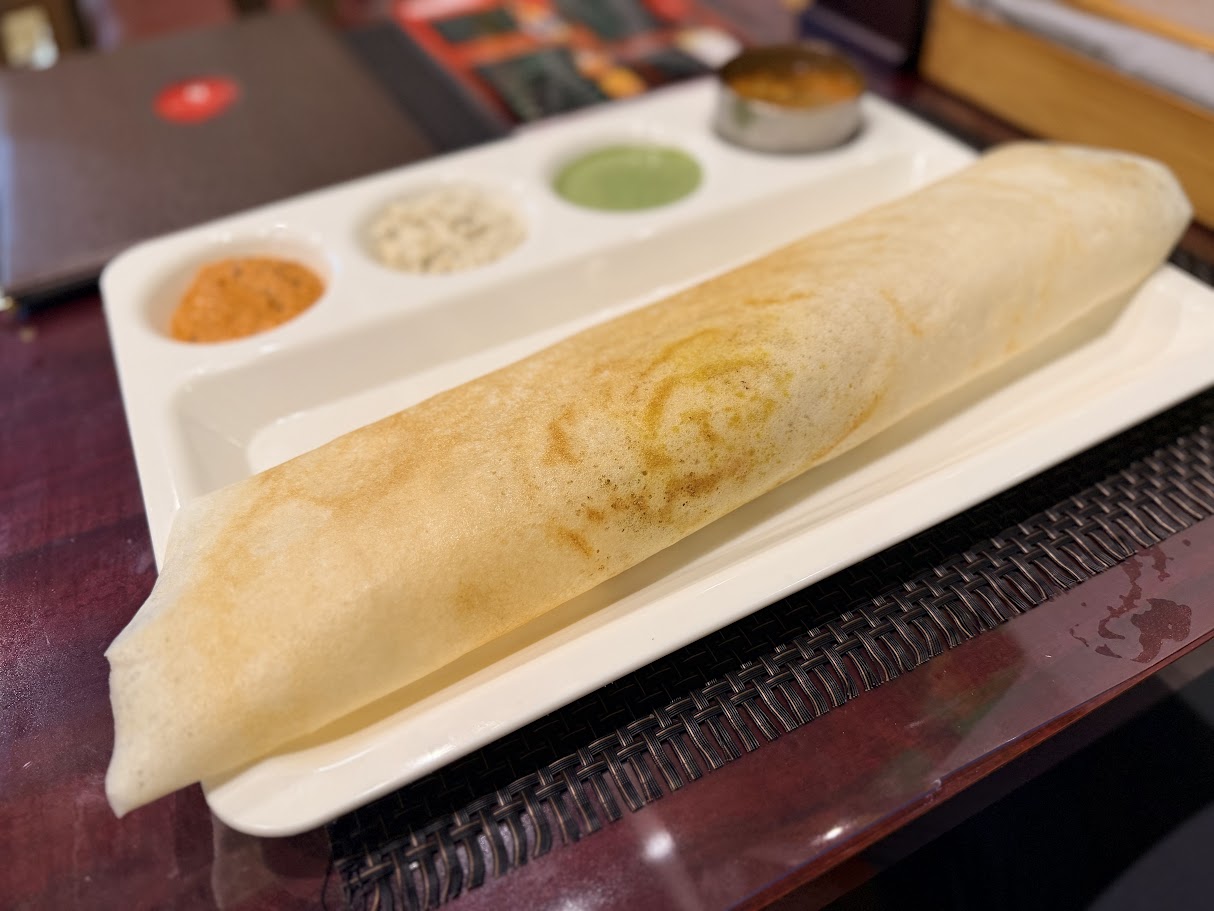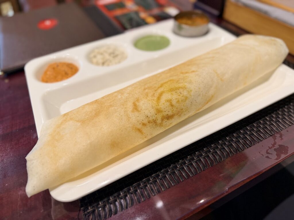 シリバラジは中目黒店と水道橋店があり、こちらの東陽町店が3店舗目。既存店ではドーサが6~8種類もあります。マサラフリークに人気の、ドーサの生地にまでマサラが練り込まれているためにドーサのサクサク感が犠牲になっているほどマサラにこだわった「シリバラジスペシャルドーサ」目当てで行きましたが、東陽町店は3種類のみとのこと。