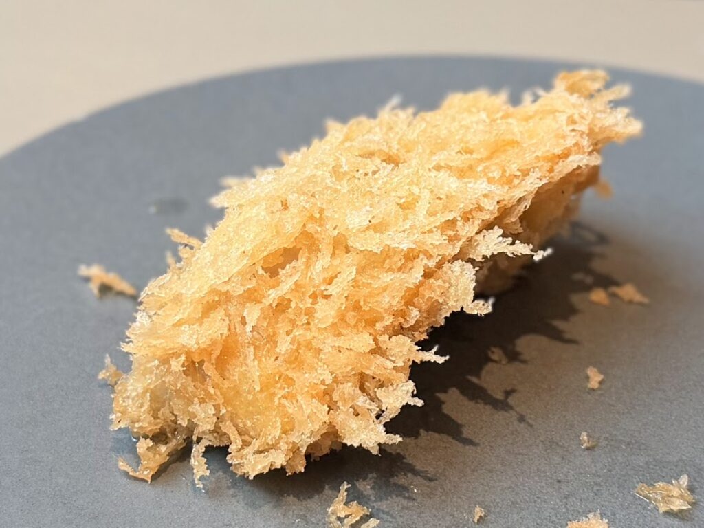 お刺身を楽しんでいると、今揚がったばかりのアジフライが2貫出てきました。