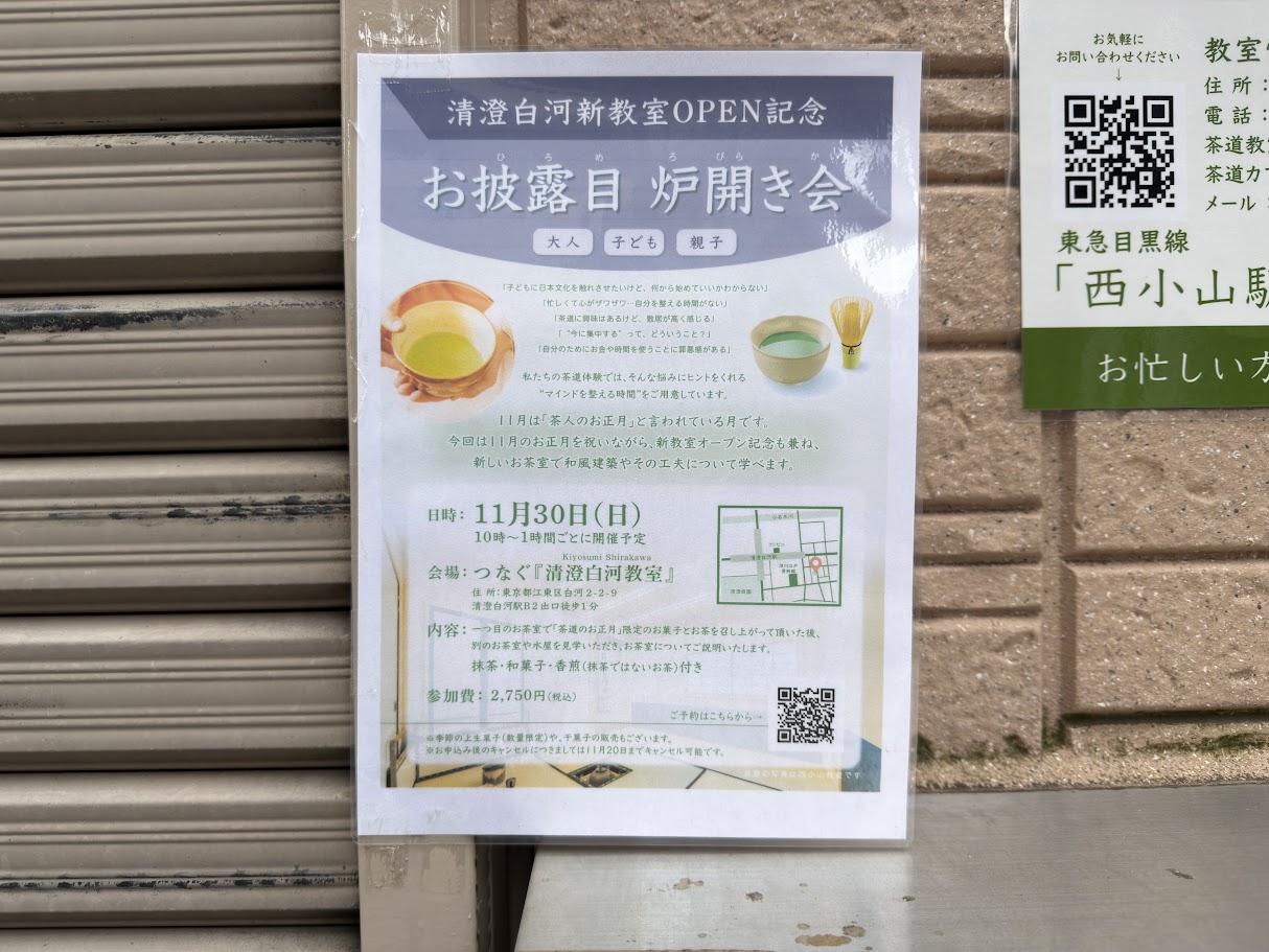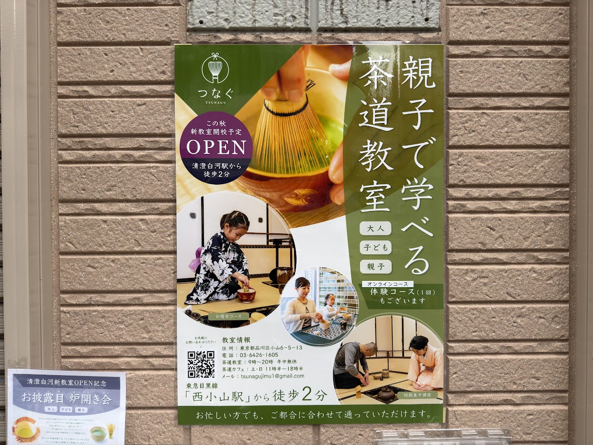2025年11月30日(日)、東京都江東区白河2-2-9 イージー茶道&茶道教室「つなぐ 清澄白河教室」で、清澄白河新教室OPEN記念「お披露目 炉開き会」を開催予定です。