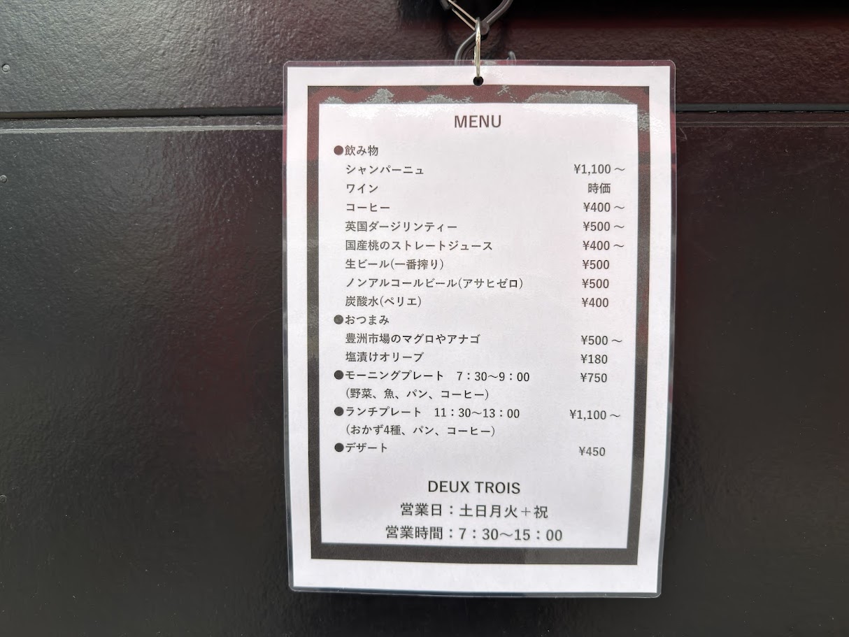 2025年12月?、東京都江東区牡丹1-5-6に、フランスワインと野菜たっぷりの食事を楽しめるブラッスリー「DEUX TROIS」がオープン予定です。