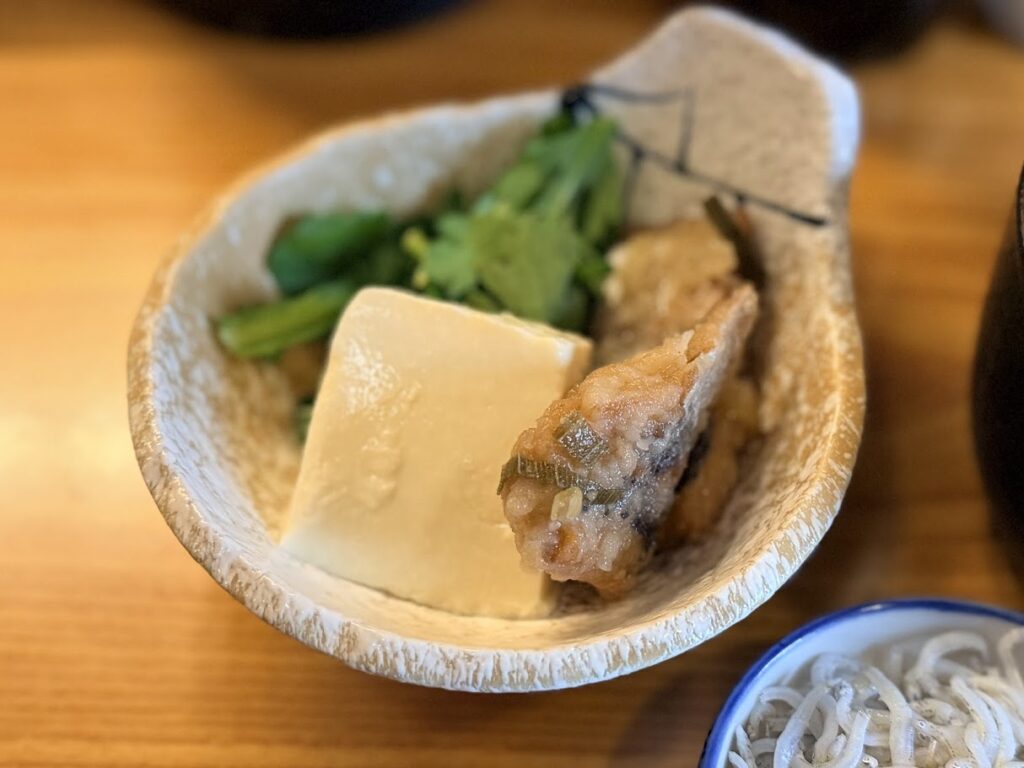 まずは、ご飯・お味噌汁・小鉢が運ばれてきます。内容は以下の通り。