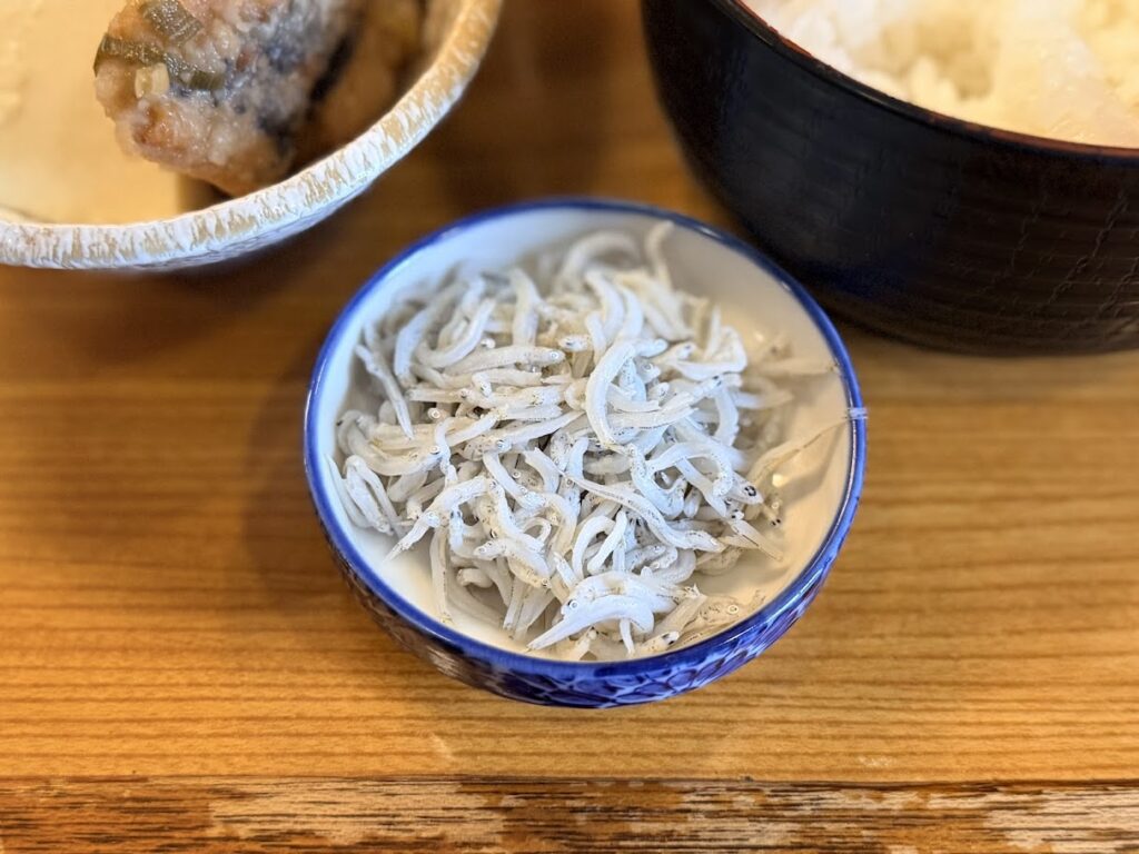 日替わり鮮魚を少しだけ。多くの日は山利のしらす。