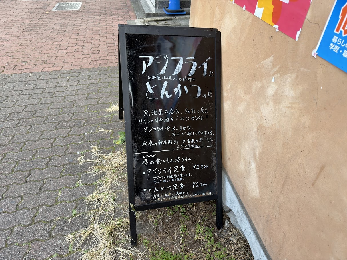 Crisp!のランチタイムメニューは「アジなフライ定食」(2200円)と「平野さんのとんかつミックス定食」(2200円)の2種類。
