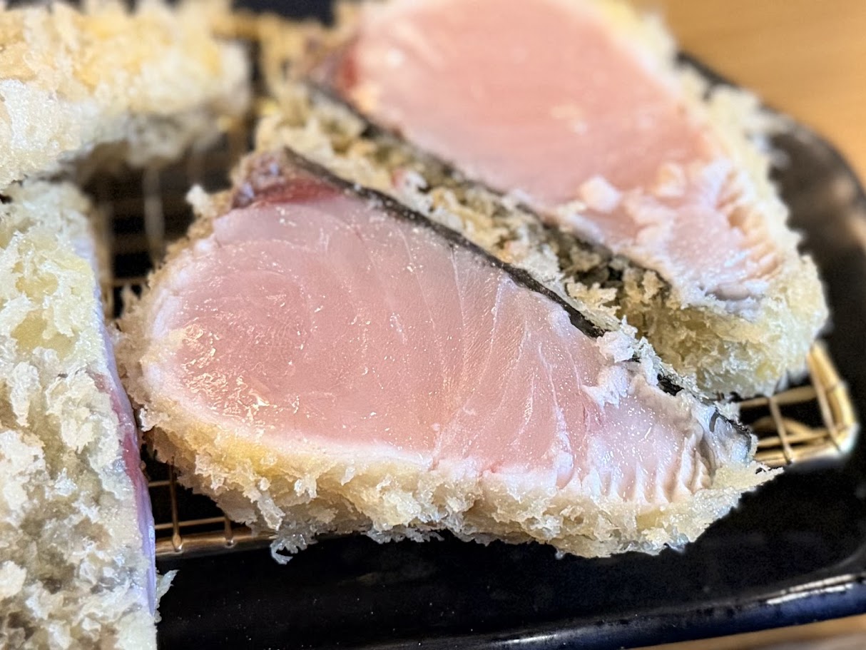 サワラのレアフライはさらに柔らかく、口の中でとろけるよう。めちゃウマありがとうございます!