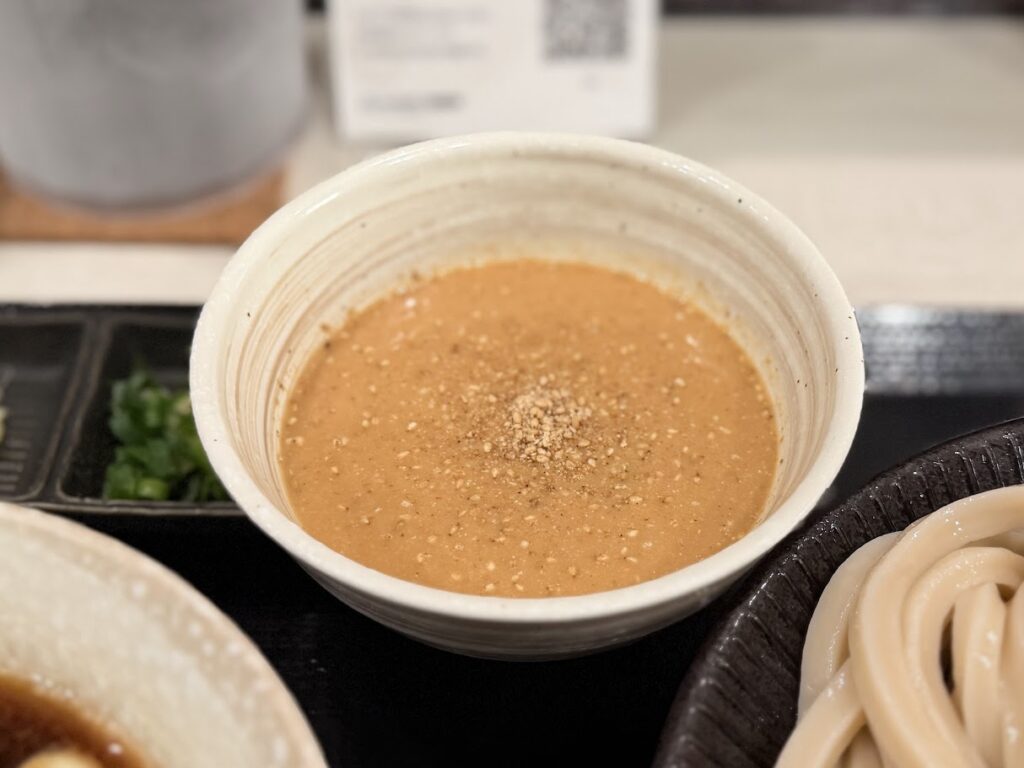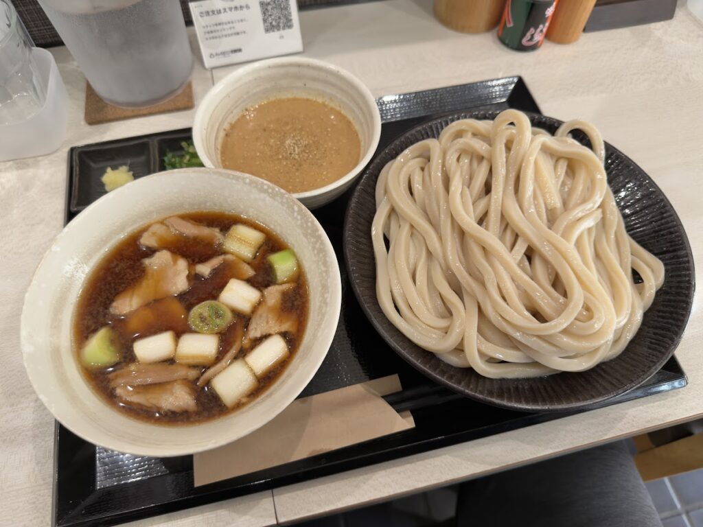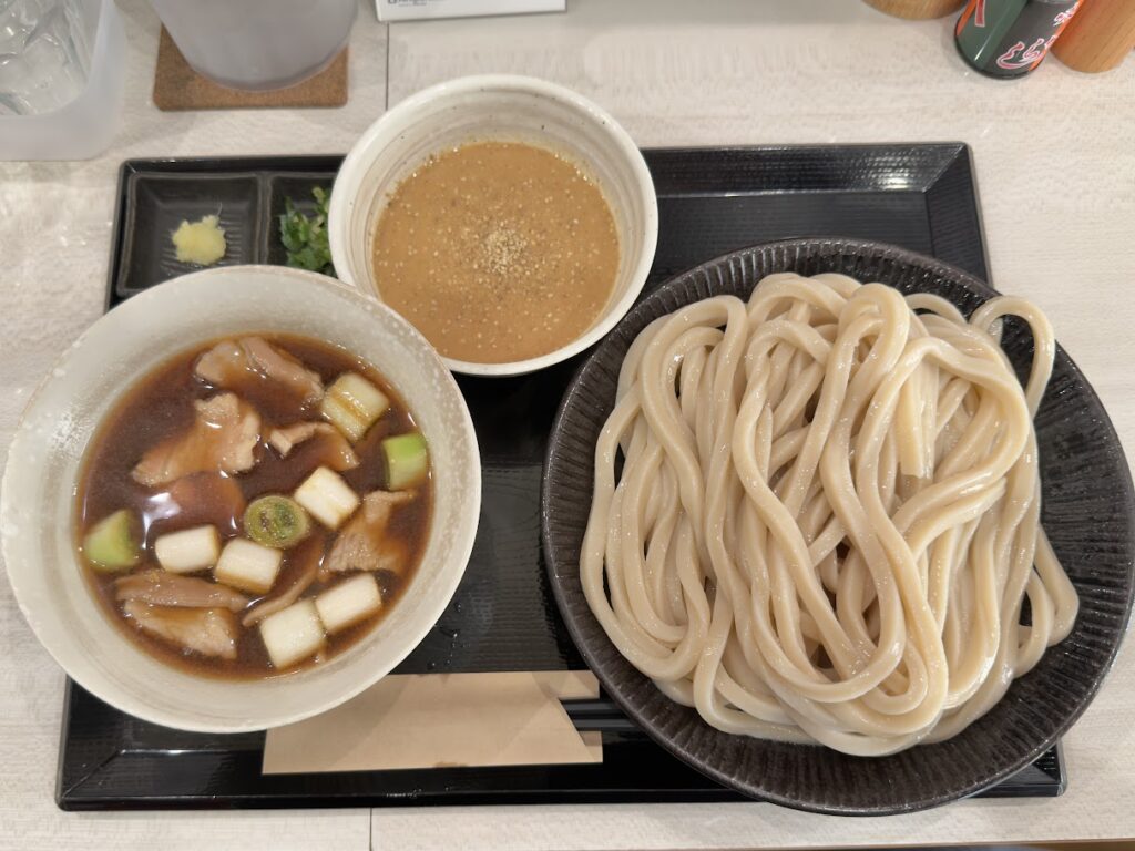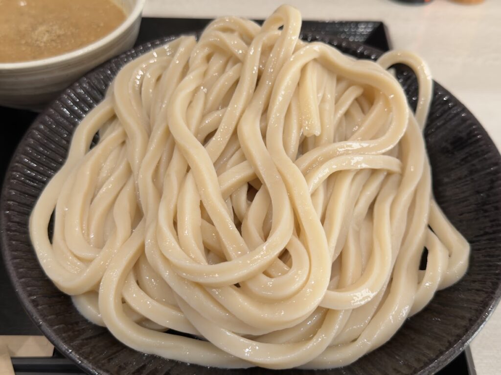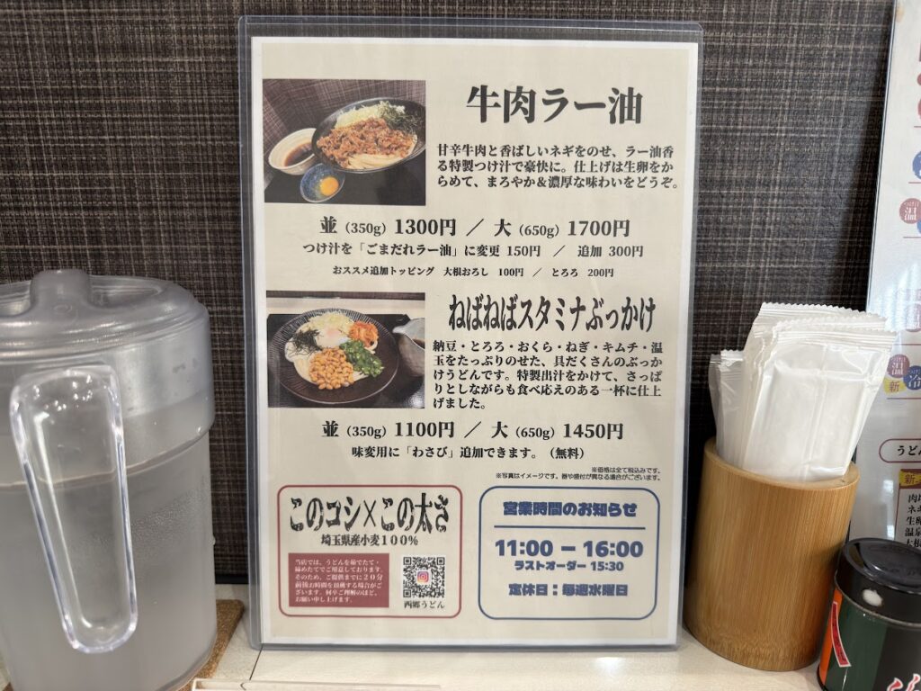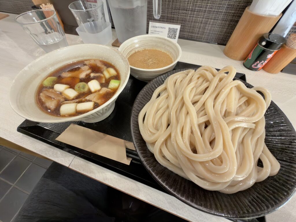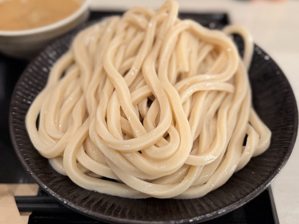 こちらは、超極太・ゴリゴリのコシがある“武蔵野つけ汁うどん”専門店です。埼玉県産小麦100%、太さ5mmクラスの極太麺を15〜16分かけて茹でて、しっかり締めて出すスタイル。