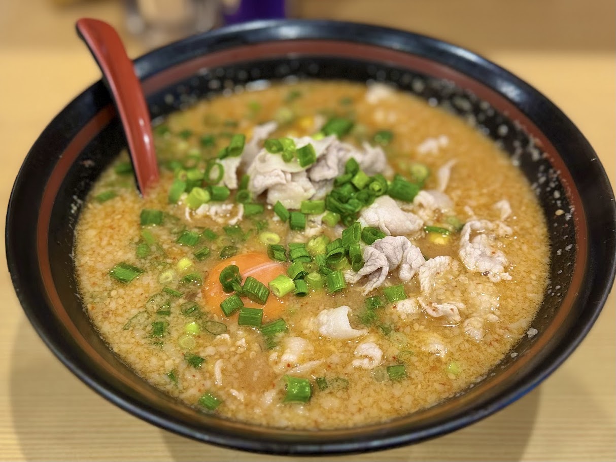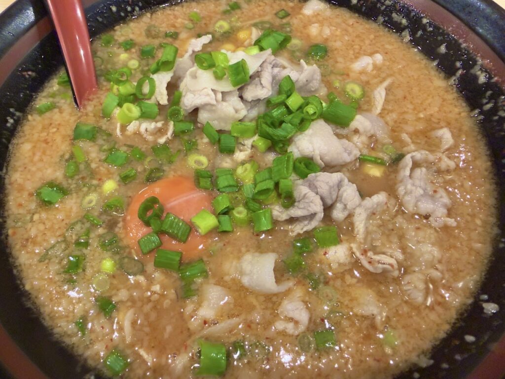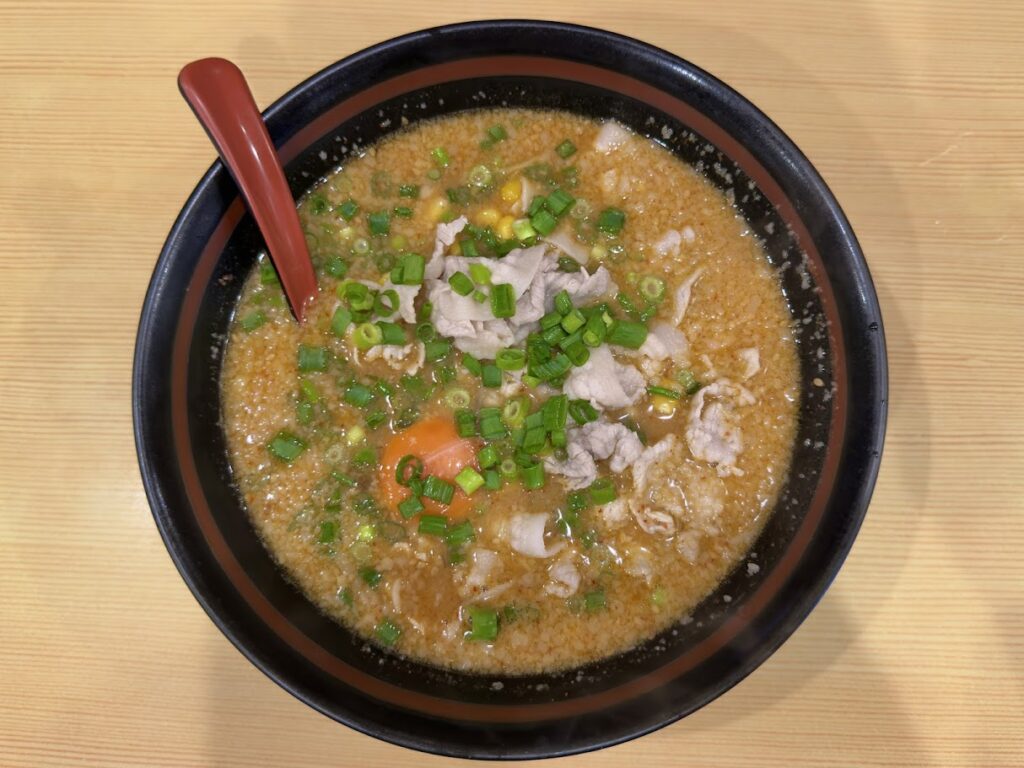 オススメしてくれたフォロワーさんからは「男は黙って辛ネギみそラーメン」と教わっていたのですが、豚肉、卵黄、細めん使用、青ネギと卵黄の見栄え麗しい「豚辛みそラーメン」の誘惑に負けました。