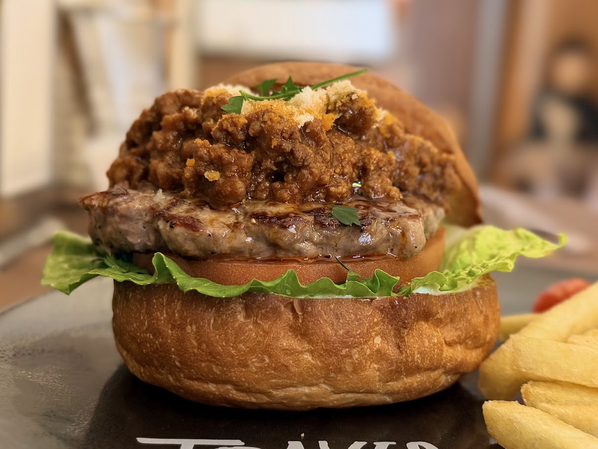 パティの上に自家製ミートソースとパルメザンチーズをたっぷりのせた最強コンビ「ボロネーゼハンバーガー」がこちらです。
