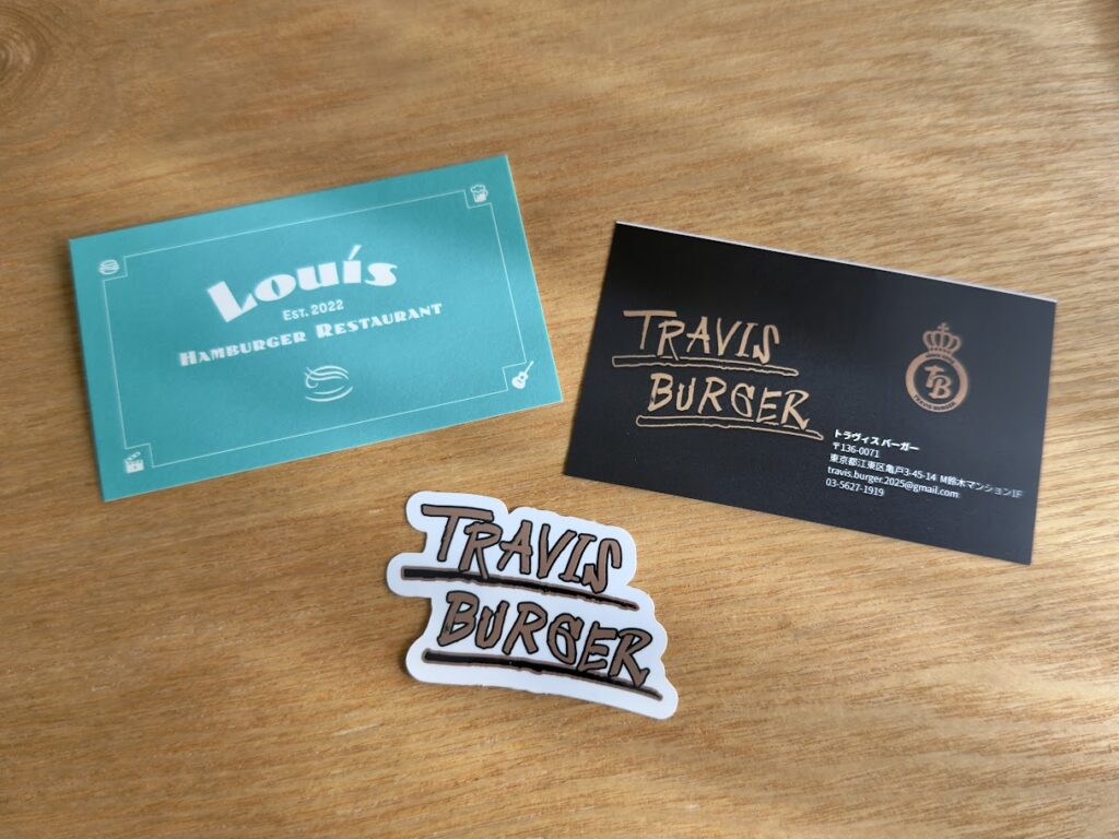 レジ横にLouis Hamburger Restaurant(東京都江東区南砂2-3-11)さんのショップカードがあったので、尋ねたところ、TRAVIS BURGERのオーナーさんは、Louis Hamburger Restaurantのオーナーさんの後輩とのこと!あ!そう言えば、Louis Hamburger Restaurantのオーナーさんも「BROZERS’」からの独立組でしたね!恐るべし「BROZERS’」。