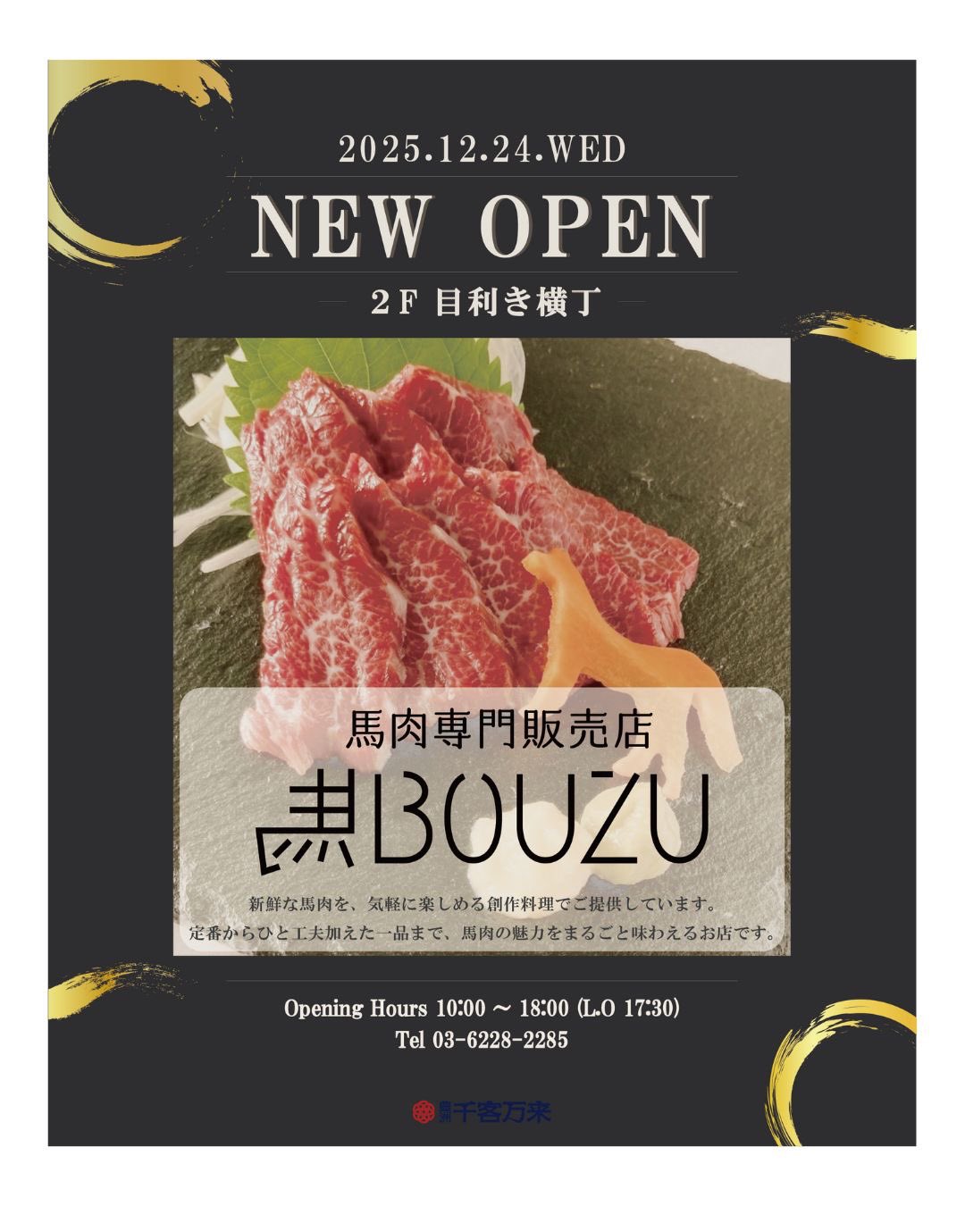 2025年12月24日(水)、東京都江東区豊洲6-5-1 豊洲千客万来2Fに、馬肉専門販売店「馬BOUZU」がオープン予定です。