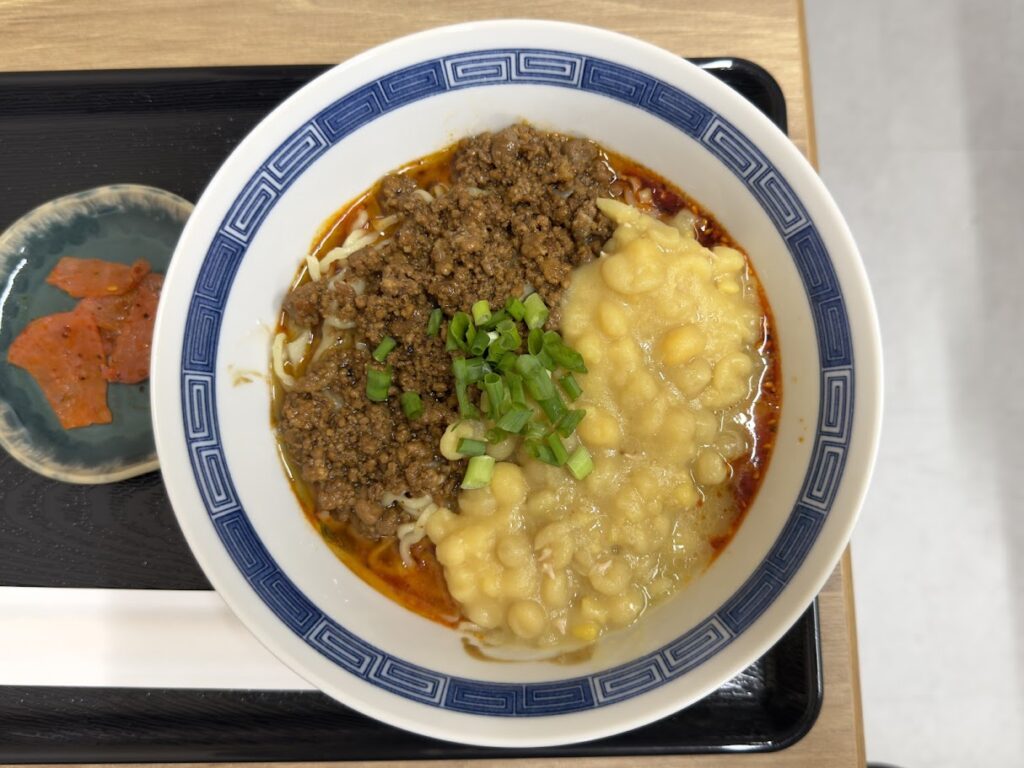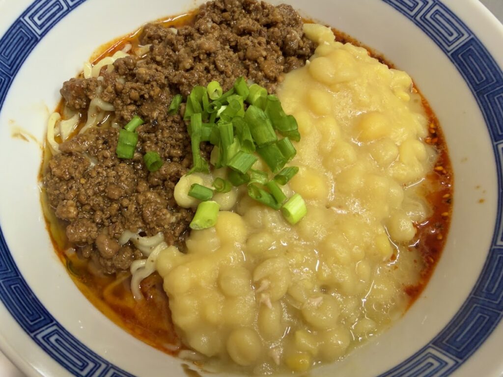 煮込まれたエンドウ豆が入っているので、最近麻辣先生が激推しして知名度が上がった「碗雑面(ワンザーメン)」と混同しそうですが、こちらはいわゆるジャージャー麺です。「碗雑面」の汁無しと言っても良いかも。丼のそこから持ち上げるようによく混ぜて食べましょう。