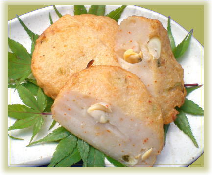 にら、きくらげ、椎茸を具材にした、木耳がアクセントのさつま揚げ「にくらし揚げ」