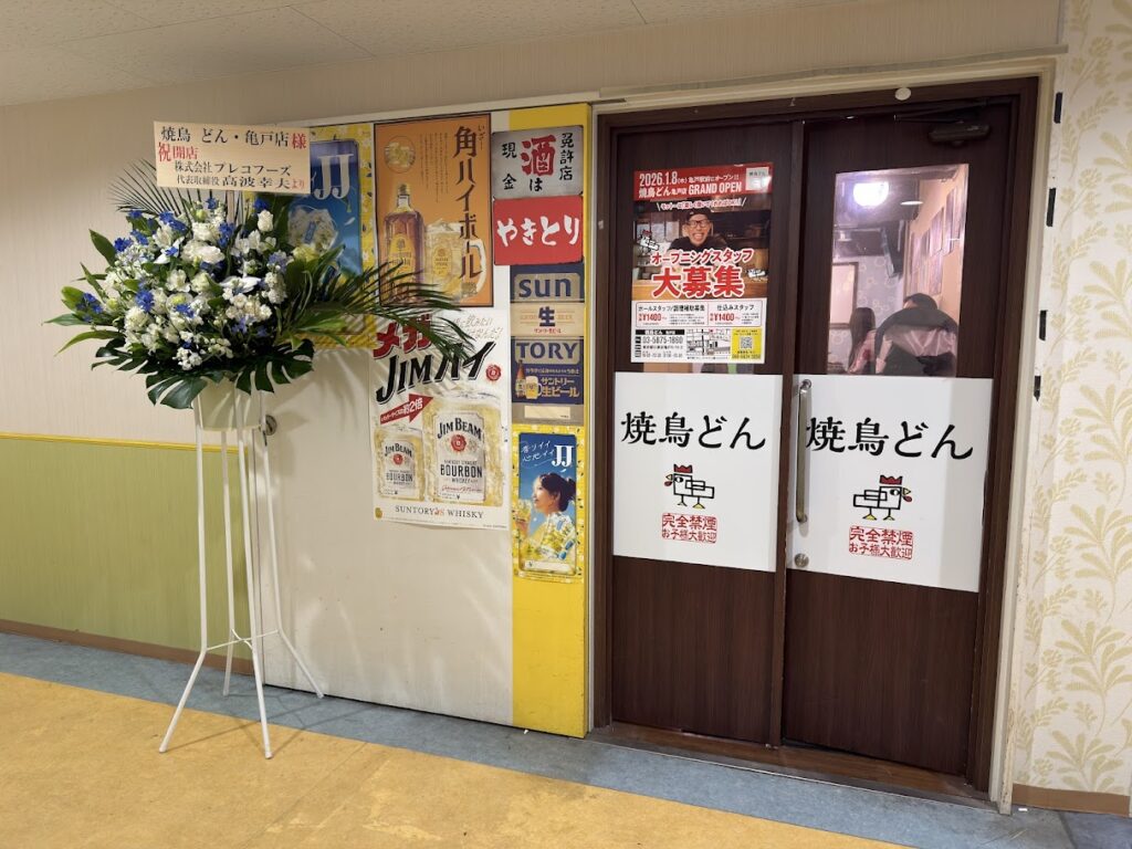 亀戸に焼鳥どんがオープンしたよ。亀戸横丁がある建物の二階だよ。 新店舗 2026.01.082026.01.09 2026年1月8日(木)、東京都江東区亀戸5-13-2-2Fに、居酒屋「焼鳥どん 亀戸店」がオープンしました。 おめでとうございます! 亀戸店は焼鳥どんグループとしては初のキッズスペース有りです!!亀戸店さんには焼鳥どんの全席禁煙、お子様歓迎の理念を形にして頂きました!!1/8 16時オープン1/14まで毎日17-20時30分まで日垣おります!【亀戸店】東京都江東区亀戸5-13-2 2F電話:03-5875-1864ご予約はプロフから! pic.twitter.com/2fD9w26sra— 焼鳥どんオーナー日垣(創業者)/FC加盟店募集中 (@higakiyakitori) January 7, 2026 亀戸に、あの「焼鳥どん」がオープンしたよ。亀戸横丁がある建物の二階だよ。 なんと、キッズスペースがある焼鳥屋さんだよ! 焼鳥どん 亀戸店(東京都江東区亀戸5-13-2-2F) 亀戸に、あの「焼鳥どん」がオープンしたよ🥳亀戸横丁がある建物の二階だよ。なんと、キッズスペースがある焼鳥屋さんだよ!😆📍焼鳥どん 亀戸店(東京都江東区亀戸5-13-2-2F) pic.twitter.com/HPUmIndzd2— 南砂一丁目 (@minamisuna1) January 9, 2026