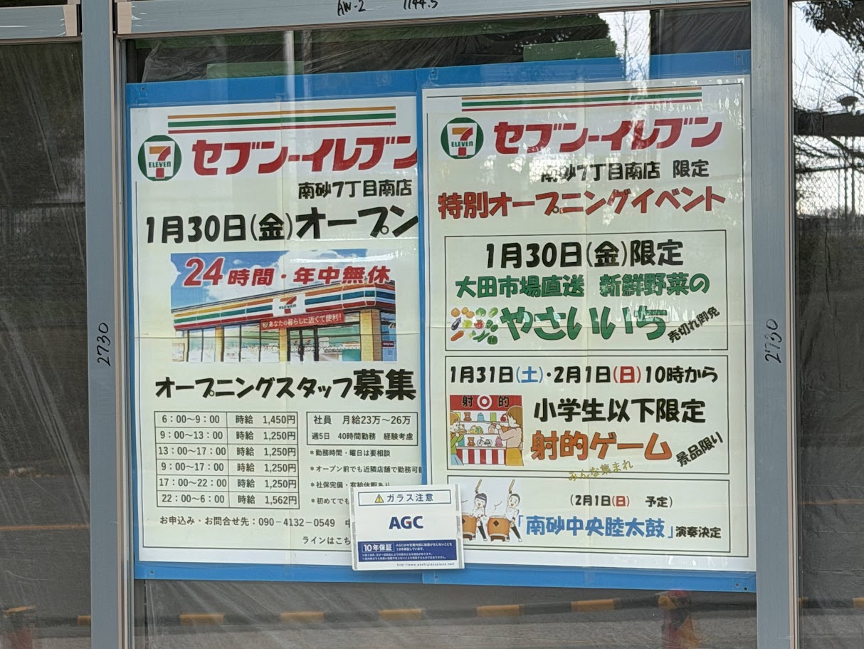 1/30(金)、南砂7丁目交差点にセブンイレブンがオープンするよ。