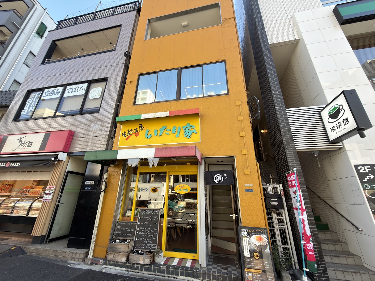 門前仲町をパトロール中、「いたり家」さんの建物右手になにやら見慣れぬ看板と暖簾。
