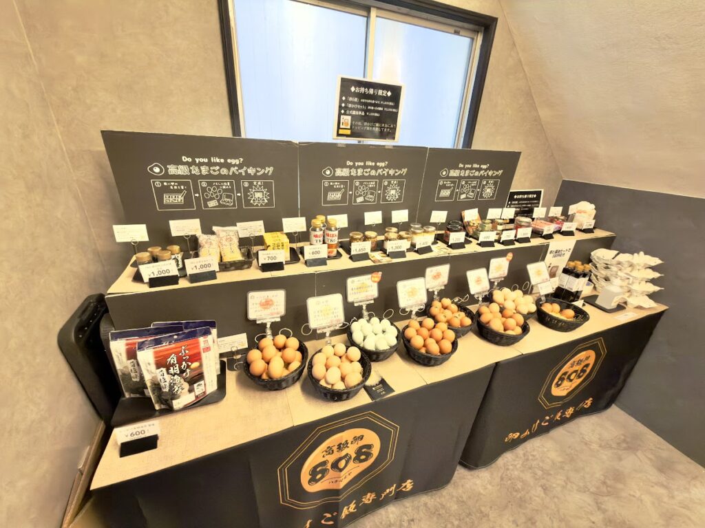 卵は、どこで選ぶかというと、店内奥のこちら!高級卵と関連商品のショーギャラリーや!