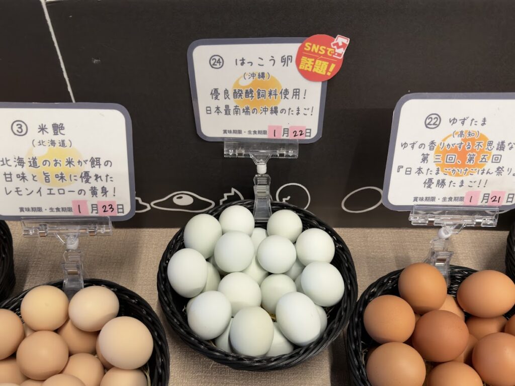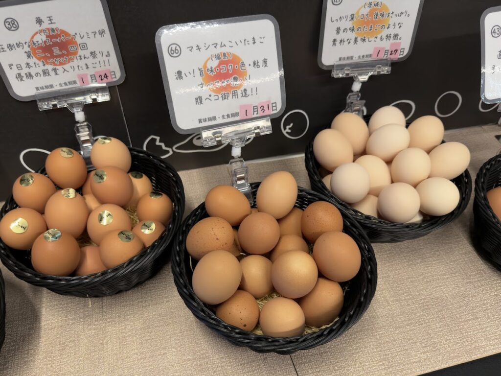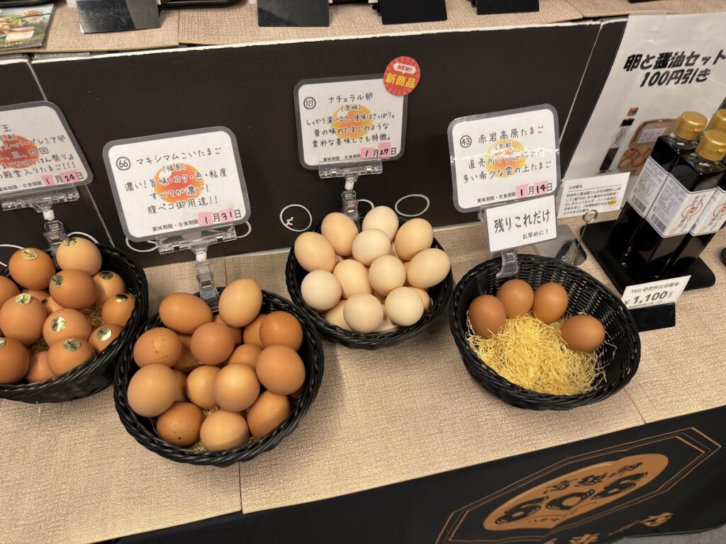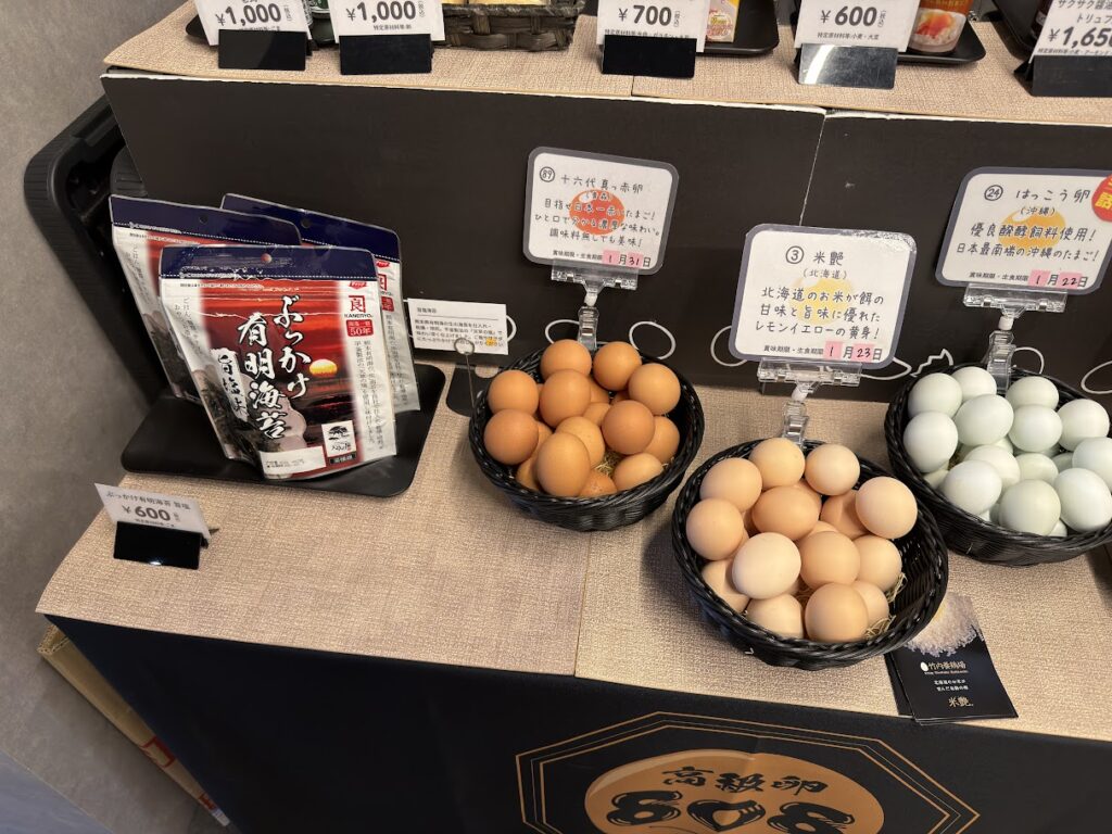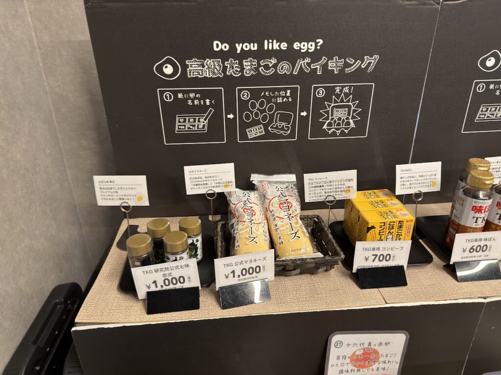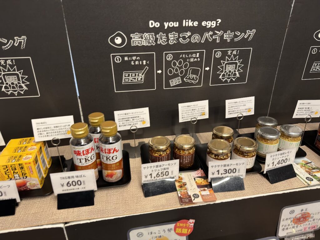 店内には高級卵がズラリと並んでいて、味変アイテムも多数販売!TKG好きならゼッタイ行って!