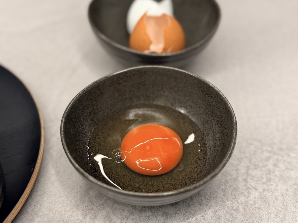 ウマーイ!「はっこう卵」は、やさしく熟成された「うま味」の塊。生臭さはなく、ほんのり甘く、発酵由来の奥行きを感じます。黄身はねっとりと濃く、舌にのせると角がなく、丸みを帯びたコクがじわっと広がります。すごい。