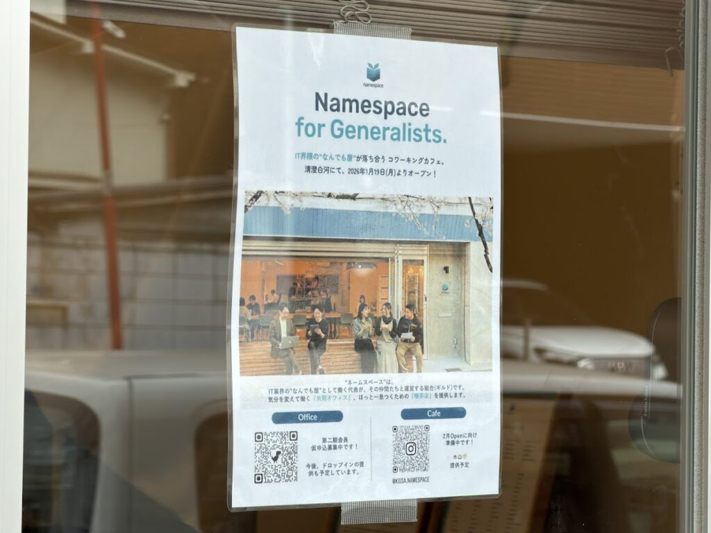 2026年2月、東京都江東区常盤2-5-11に、シェアオフィス併設の喫茶店「namespace」がオープン予定です。
