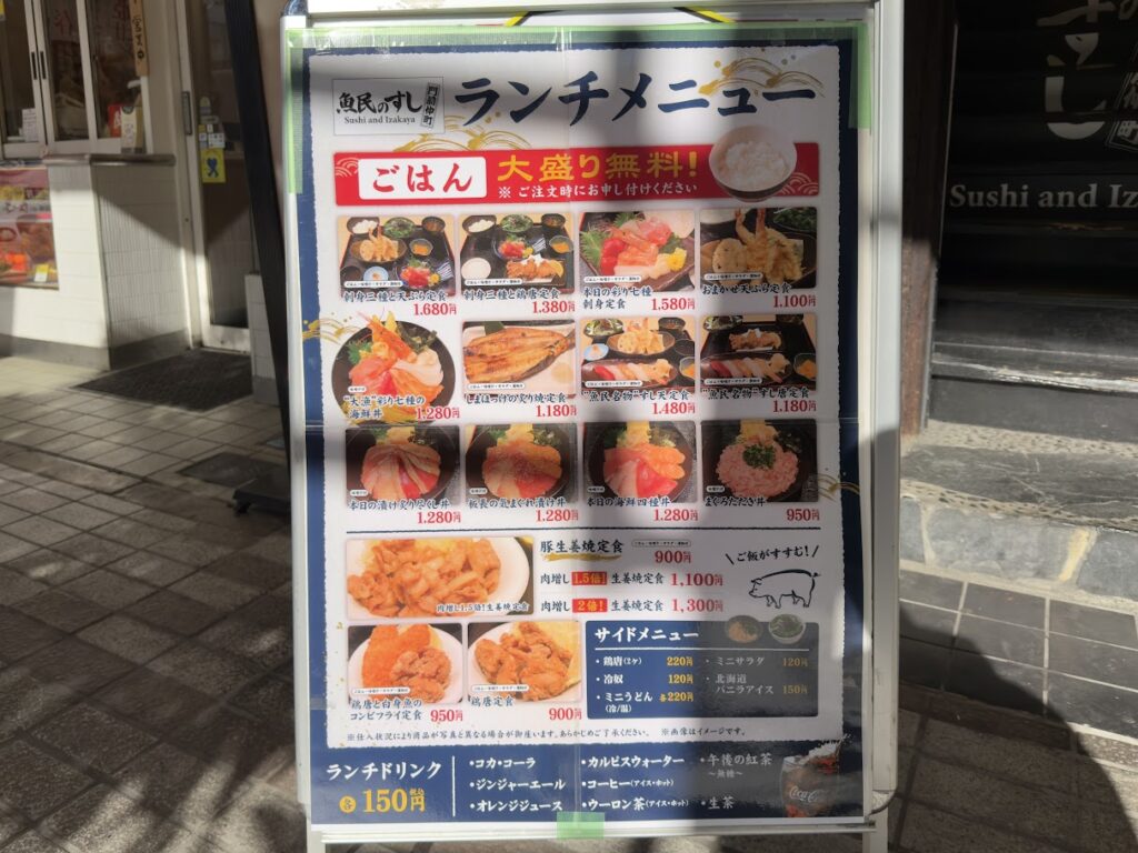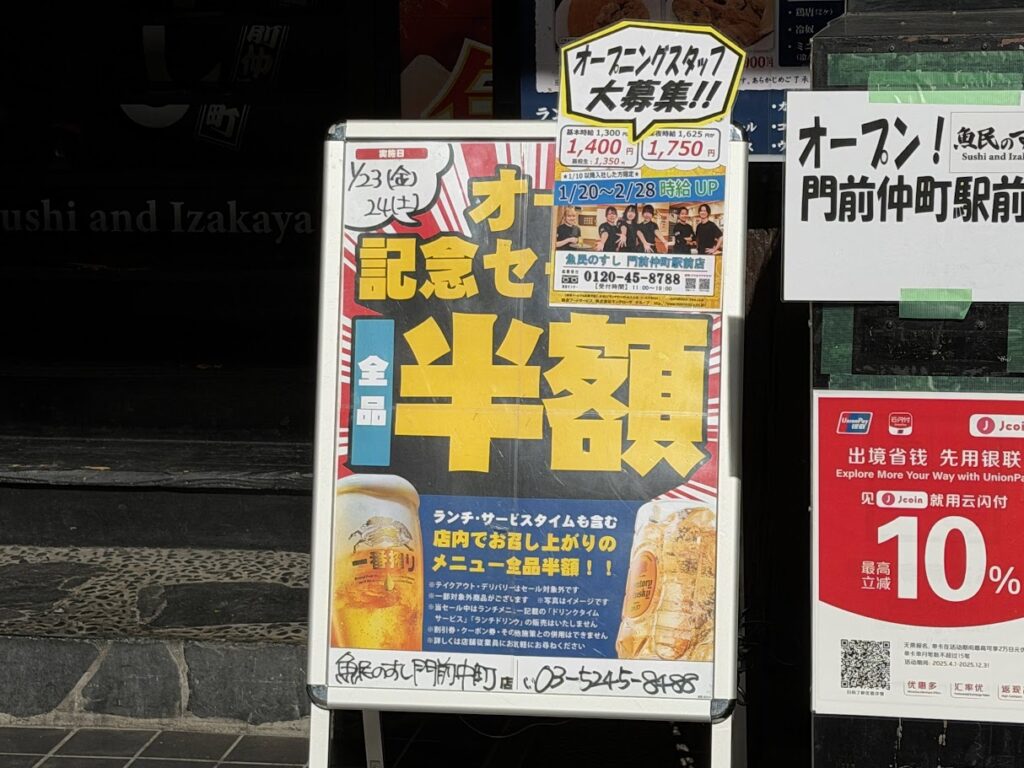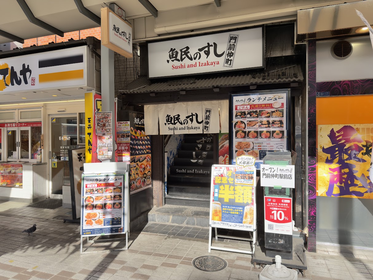 門前仲町の目利きの銀次が魚民のすしに業態転換したよ。 新店舗 2026.01.23 2026年1月23日(金)、東京都江東区富岡1-8-17-2F、3Fに、寿司店「魚民のすし 門前仲町駅前店」がオープンしました。 おめでとうございます! 門前仲町の目利きの銀次が魚民のすしに業態転換したよ。 オープン記念セールで、明日まで全品半額とのこと。 それって、一番高いランチメニュー「刺身三種と天ぷら定食」1680円が、840円ってコト? 魚民のすし 門前仲町駅前店(東京都江東区富岡1-8-17-2F、3F) 門前仲町の目利きの銀次が魚民のすしに業態転換したよ🥳オープン記念セールで、明日まで全品半額とのこと🤔それって、一番高いランチメニュー「刺身三種と天ぷら定食」1680円が、840円ってコト⁉️😲📍魚民のすし 門前仲町駅前店(東京都江東区富岡1-8-17-2F、3F) pic.twitter.com/Kq7f6vUHuB— 南砂一丁目 (@minamisuna1) January 23, 2026