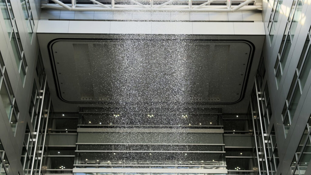 江東区の臨海エリア、有明の東京ファッションタウンビル(TFTビル)にある名物が「室内滝 シャワーツリー35」。吹き抜けの真上から、高さ35m・約2トンの水が約7分間一気に落ちる、水×光×音のショーです。「室内でこれは…」ってなるスケール感なので、近くに行く用事があるなら一度は見て損なし。