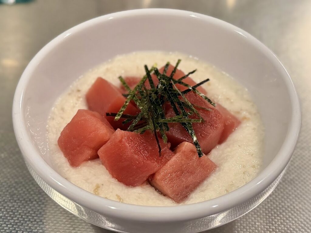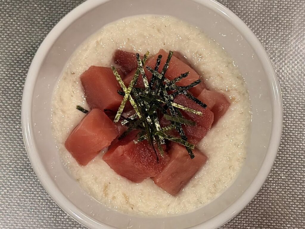 バチマグロは、脂は控えめだけど赤身の甘さが際立つマグロなので「マグロの山かけ」にピッタリ。