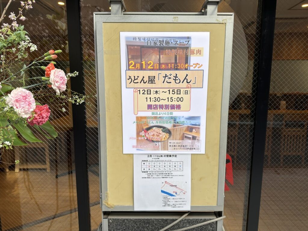 門前仲町にうどん専門店がオープンしたよ。岩本町にあった人気店の移転復活オープンだよ。 新店舗 2026.02.12 2026 年2月12日(木)、東京都江東区富岡1-2-4に、うどん店「だもん」がオープンしました。 おめでとうございます! X: https://x.com/udonyadamon