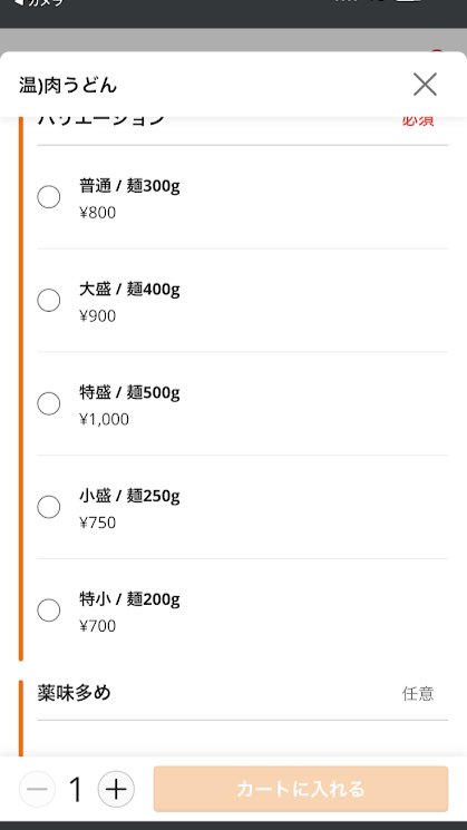 面白いのは、玉子とじ仕上げ(+120円)や、こがね仕上げ(+150円)も選択できるところ。玉子とじはそのままですが、こがね仕上げは、薄口醤油とみりんを絶妙なバランスで配合した関西風うどんのやつ。ちょっと興味あります。