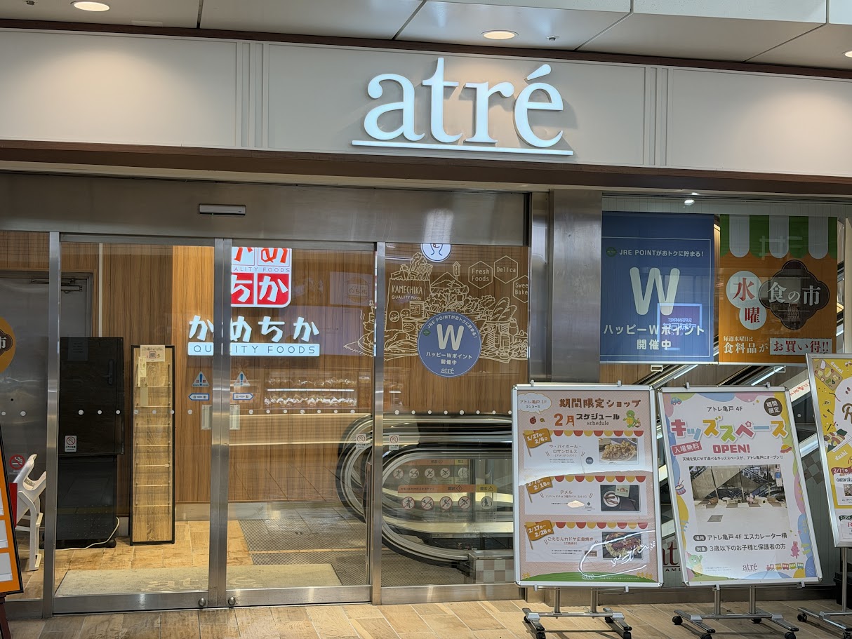 アトレ亀戸B1F「かめちか」に、崎陽軒、おそうざい村、ちよだ鮨の新店舗がオープンしたよ。 新店舗 2026.02.252026.02.27 2026年2月25日(水)、東京都江東区亀戸5-1-1 アトレ亀戸B1Fに、 惣菜店「おそうざい村 アトレ亀戸店」 シウマイ弁当のお店「崎陽軒 アトレ亀戸店」 鮨店「ちよだ鮨 アトレ亀戸店」 がオープンしました。 おめでとうございます!