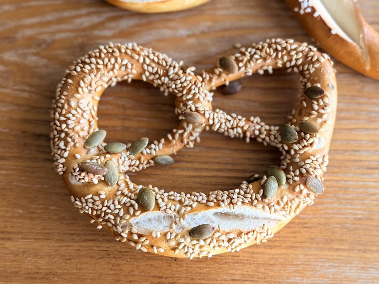 南砂・KLEINER BÄCKER(クライナーベッカー)「ブレッツェル(各種)」 グルメ 2026.02.28 おいしいブレッツェルは南砂にあります! KLEINER BÄCKER(クライナーベッカー)(南砂4-5-15)ブレッツェル(各種) 腹持ちが良く、おやつにビッタシ! ■ブレッツェル(250円)代表的なドイツパン。場所によって食感が違い、塩味がアクセントに。 ■ケーゼブレッツェル(350円)ブレッツェルにモッツァレラチーズがたっぷり。 ■ブレッツェル(かぼちゃ種とごま)(350円)ブレッツェルにかぼちゃの種とごまをトッピング。香ばしい!