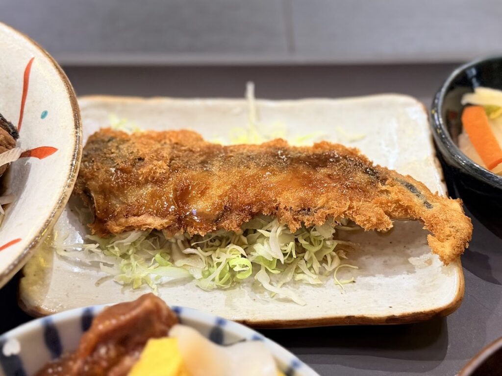 「今日の揚げ物」は「アジフライ」。揚げたてサクサク。
