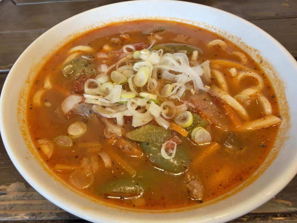 スパイシーなトマトスープはめちゃウマで、完飲しました。