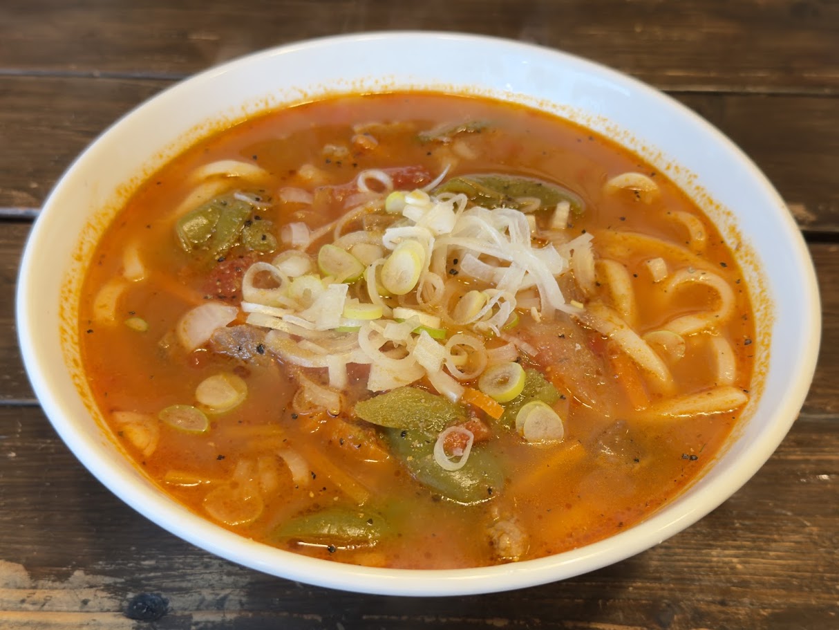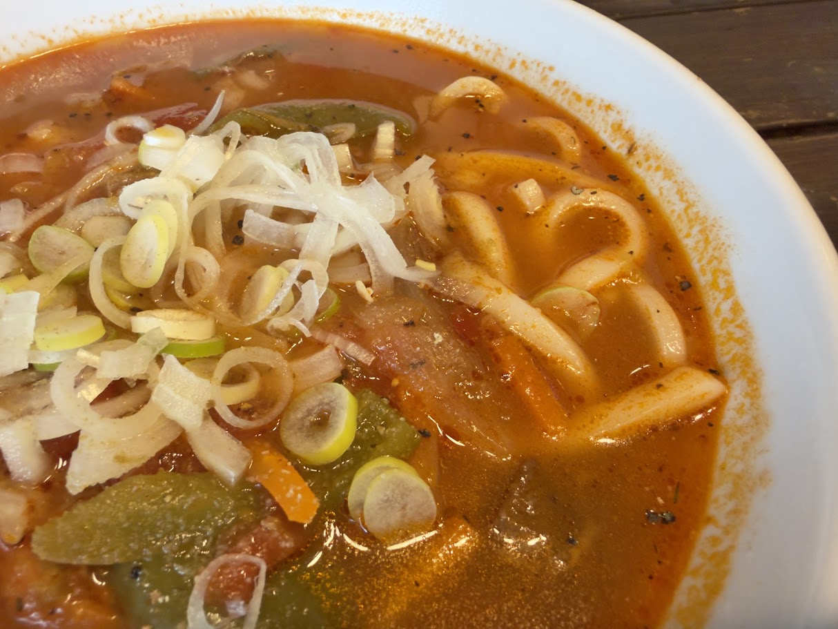 スパイシーなトマトスープはめちゃウマで、完飲しました。