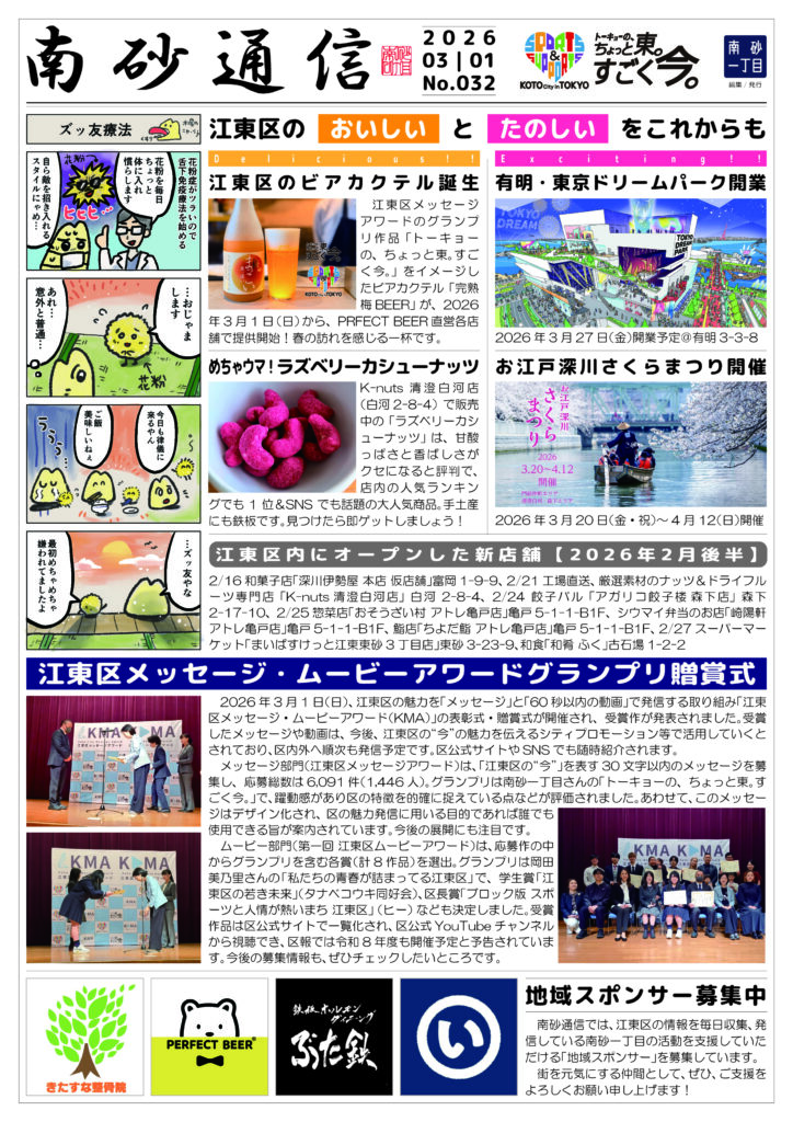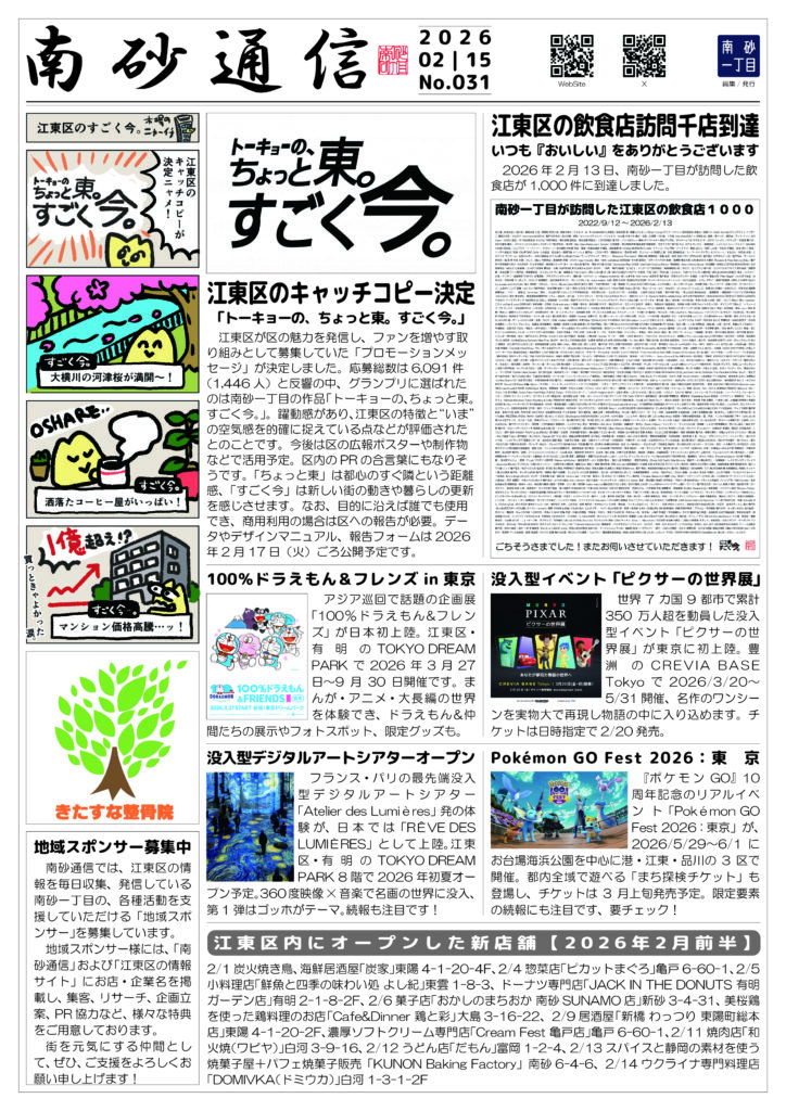 2024年11月1日(金)創刊。江東区内の「たのしい!」と「おいしい!」だけを掲載する、無料の江東区オンリーメディアです。毎月1日と15日、月2回発行。